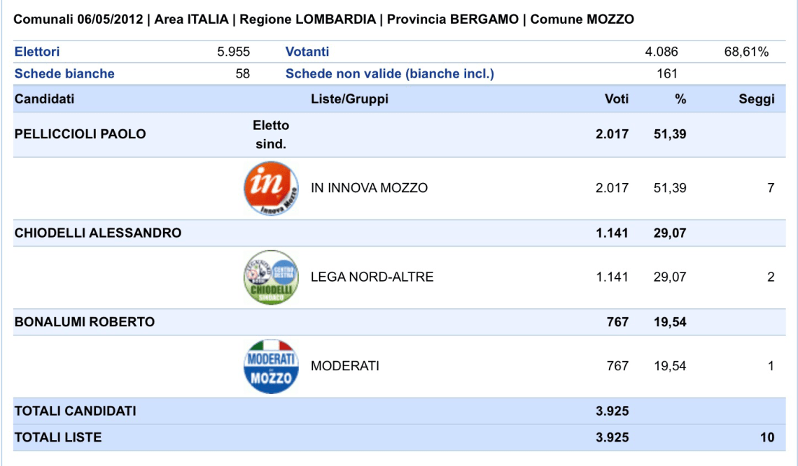 Mozzo/Elezioni 2017: risultati dalle 23,15| Mozzo News|58,72% affluenza finale admin11 giugno 201711 giugno 2017blog post Navigazione articoli PrecedenteContinua Visita l’articolo per saperne di più: Elezioni 2017: risultati Risultati 2012 Condividi:CondivisioneTweet Fai clic qui per stampare (Si apre in una nuova finestra) Stampa Fai clic per inviare un link a un amico via e-mail (Si apre in una nuova finestra) E-mail Mi piace Caricamento... Correlati
