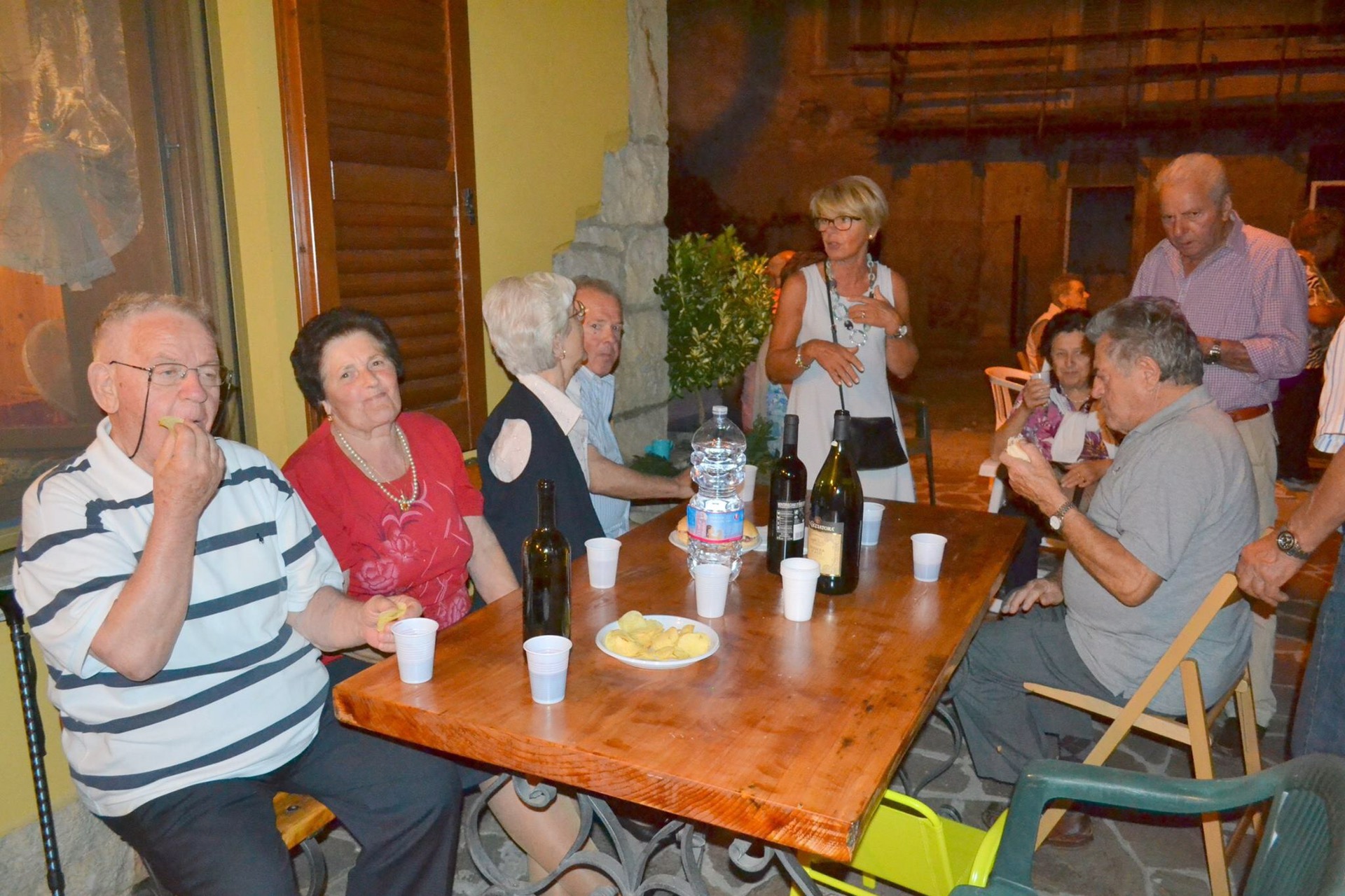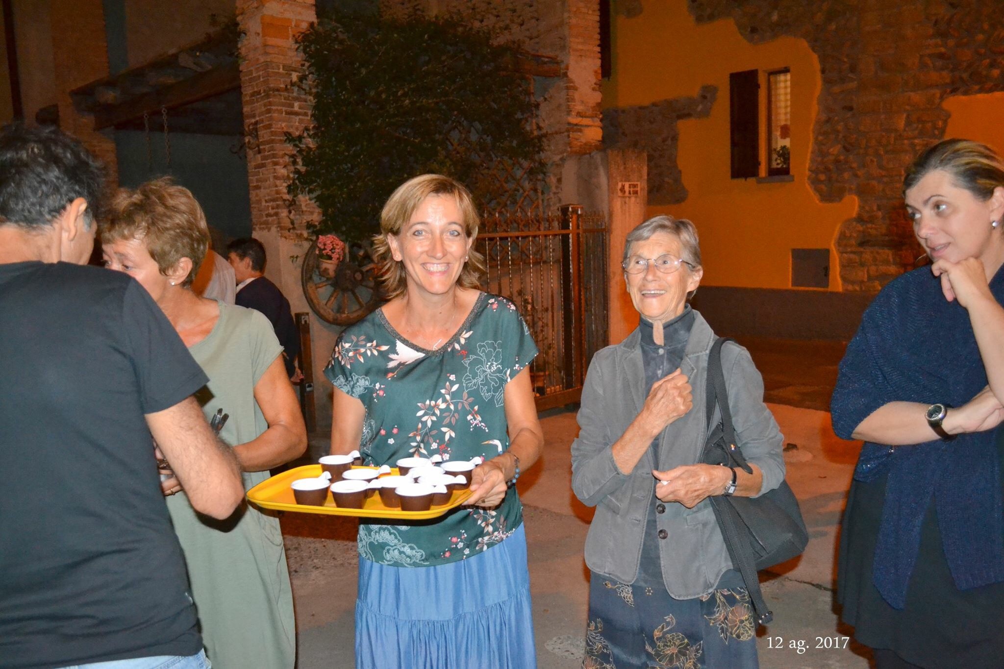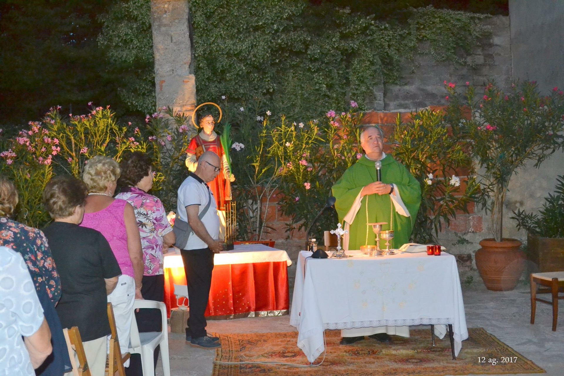 “Mozzo di Sopra,contrada San Lorenzo. Questa sera si è festeggiato il Patrono della Contrada con la celebrazione della S. Messa officiata da don Giulio, a seguire come da tradizione le famiglie Brena e Locatelli “hanno aperto la cantina” con pane e salame per tutti i presenti, e dulcis in fundo, torta e caffè.” Foto Luigi Rota