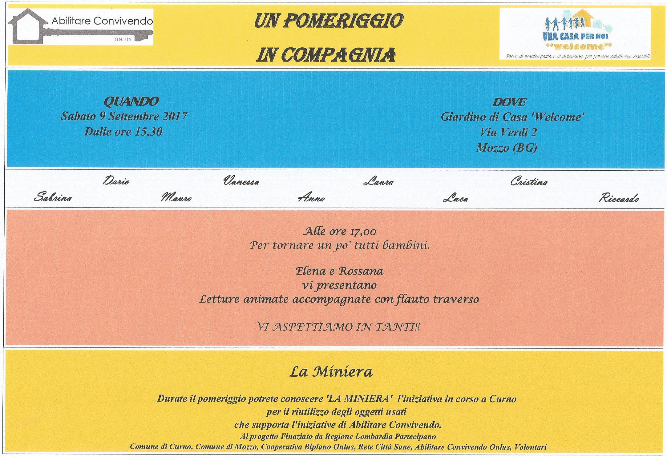 Mozzo/Abilitare Convivendo: “un pomeriggio insieme ” il 9 settembre admin7 settembre 2017blog post Navigazione articoli PrecedenteContinua Condividi:CondivisioneTweet Fai clic qui per stampare (Si apre in una nuova finestra) Stampa Fai clic per inviare un link a un amico via e-mail (Si apre in una nuova finestra) E-mail Mi piace Caricamento... Correlati