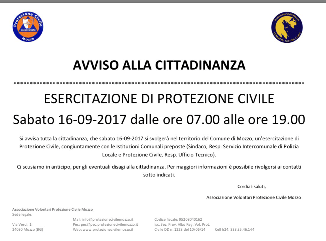 Mozzo/Protezione civile: “allerta esercitazione 16/09/2017 ore 07-19” admin15 settembre 2017blog post Navigazione articoli PrecedenteContinua Condividi:CondivisioneTweet Fai clic qui per stampare (Si apre in una nuova finestra) Stampa Fai clic per inviare un link a un amico via e-mail (Si apre in una nuova finestra) E-mail Mi piace Caricamento... Correlati