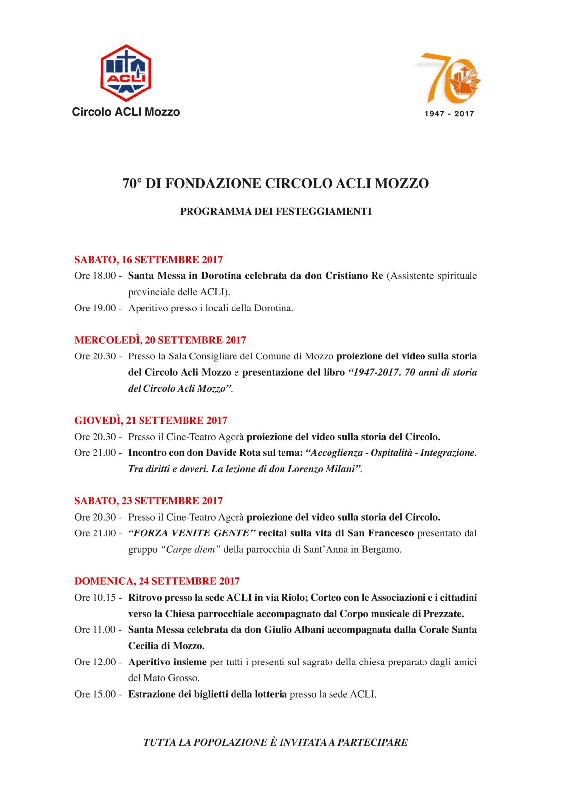 Mozzo/70esimo Acli: oggi iniziano le celebrazioni admin16 settembre 2017blog post Navigazione articoli PrecedenteContinua Visita l’articolo per saperne di più. Sorgente: 70esimo Acli Condividi:CondivisioneTweet Fai clic qui per stampare (Si apre in una nuova finestra) Stampa Fai clic per inviare un link a un amico via e-mail (Si apre in una nuova finestra) E-mail Mi piace Caricamento... Correlati