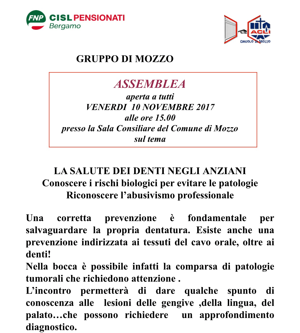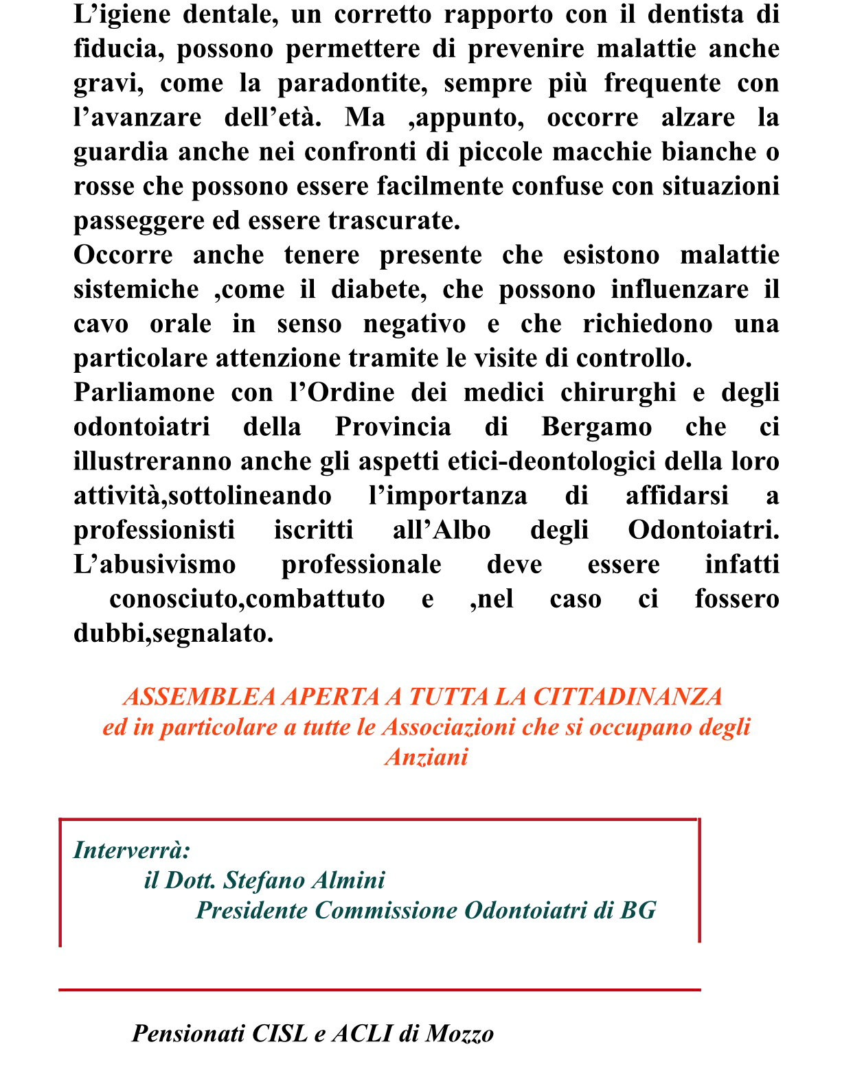 Mozzo/Acli-Cisl: la salute dei denti negli anziani il 10 novembre admin8 novembre 2017blog post Navigazione articoli PrecedenteContinua Condividi:CondivisioneTweet Stampa (Si apre in una nuova finestra) Stampa Invia un link a un amico via e-mail (Si apre in una nuova finestra) E-mail Mi piace Caricamento... Correlati
