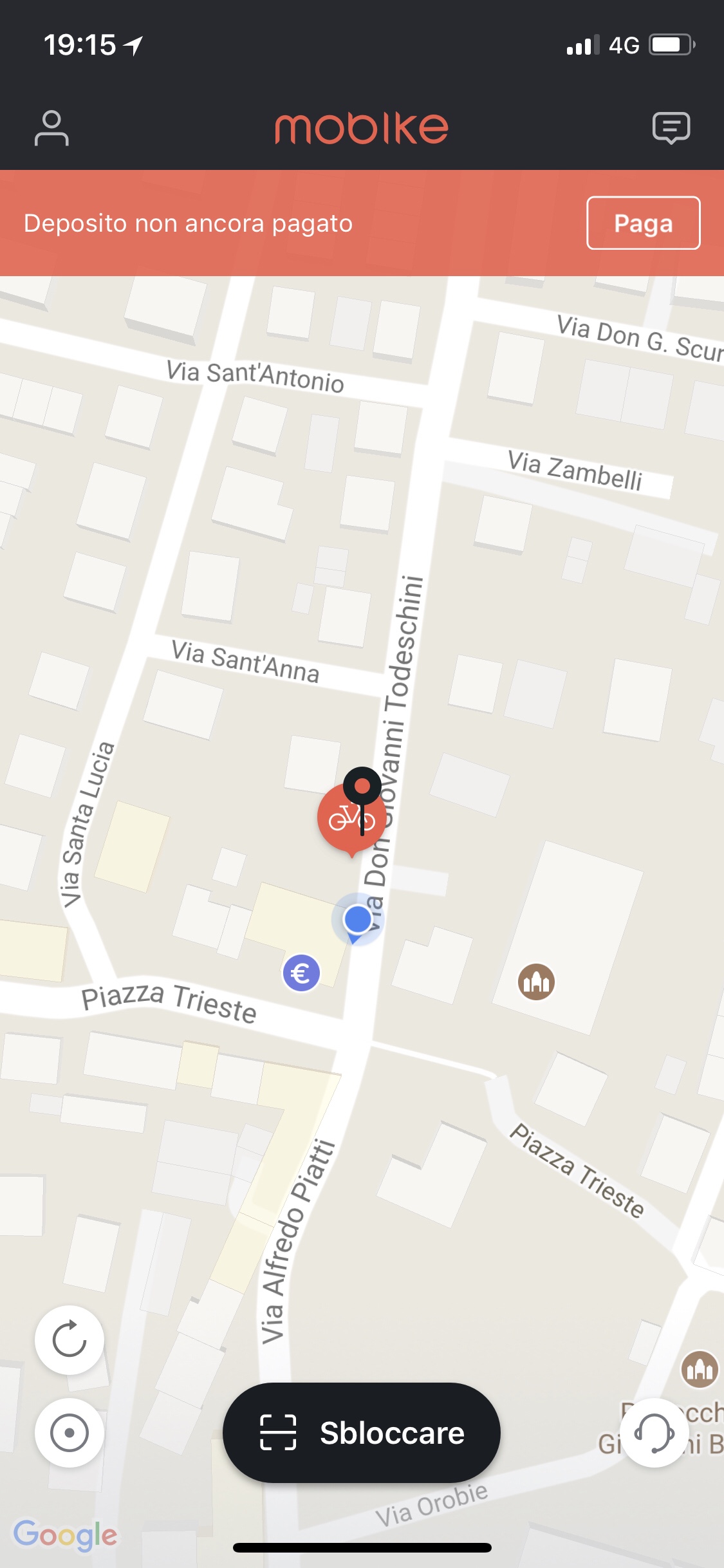 “Oramai sono alcuni giorni che la Mobike staziona in via Todeschini. Oltre il costo supplementare per il fuori zona, la fatica della pedalata dal centro citta’. Chissà chi e’l’ardimentoso?. Comunque lApp Mobike conferma che la bici e’ disponibile per chi volesse usarla…”