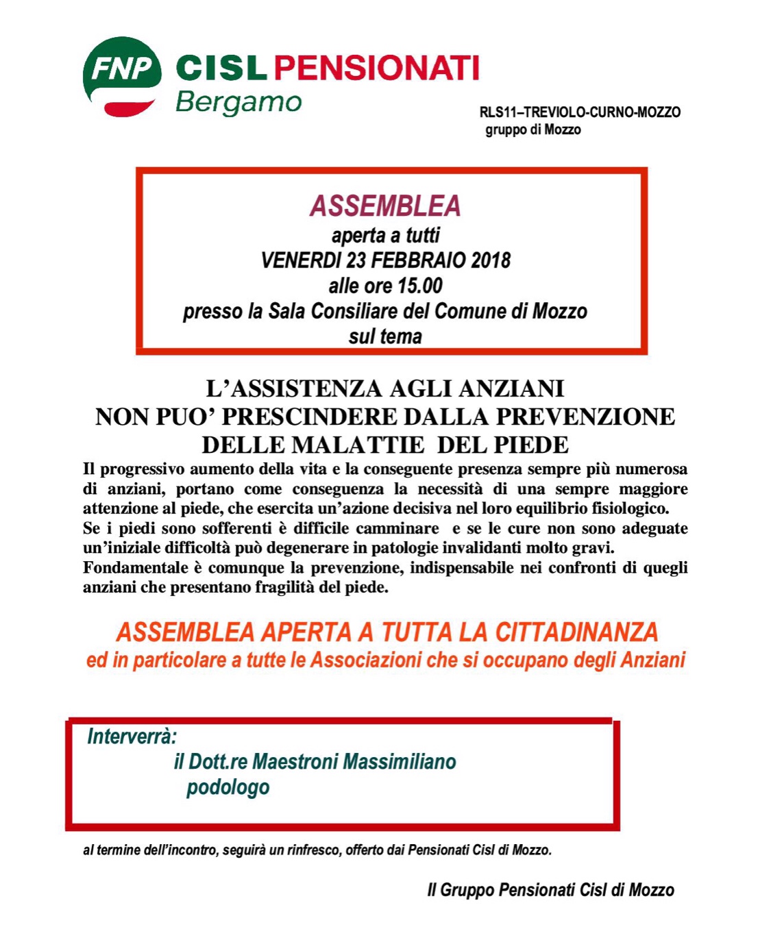 Mozzo/Cisl: incontro con podologo venerdì ore 15 admin22 febbraio 2018blog post Navigazione articoli PrecedenteContinua Condividi:CondivisioneTweet Stampa (Si apre in una nuova finestra) Stampa Invia un link a un amico via e-mail (Si apre in una nuova finestra) E-mail Mi piace Caricamento... Correlati