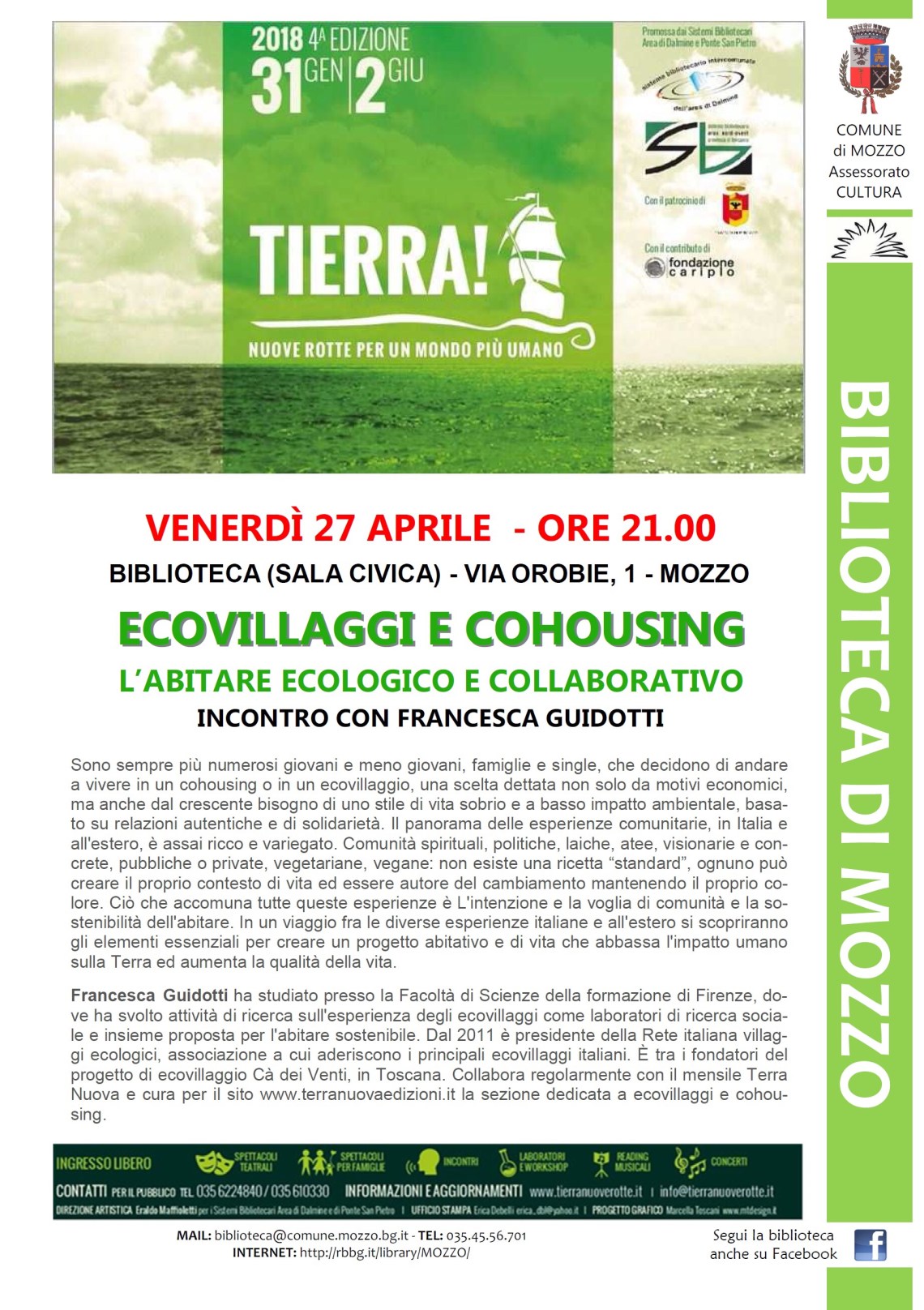 Mozzo/Biblioteca: : Ecovillaggi e Cohousing il 27 aprile admin27 aprile 2018blog post Navigazione articoli PrecedenteContinua Condividi:CondivisioneTweet Fai clic qui per stampare (Si apre in una nuova finestra) Stampa Fai clic per inviare un link a un amico via e-mail (Si apre in una nuova finestra) E-mail Mi piace Caricamento... Correlati
