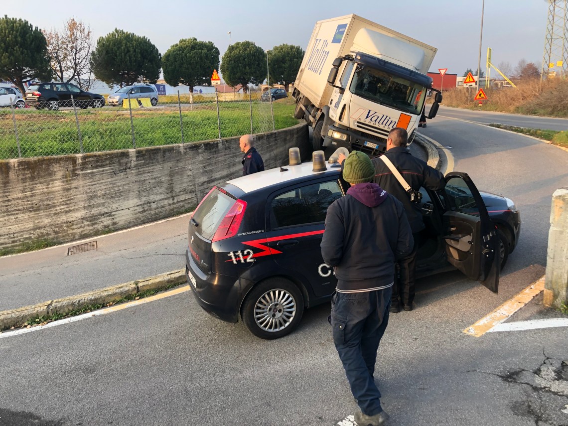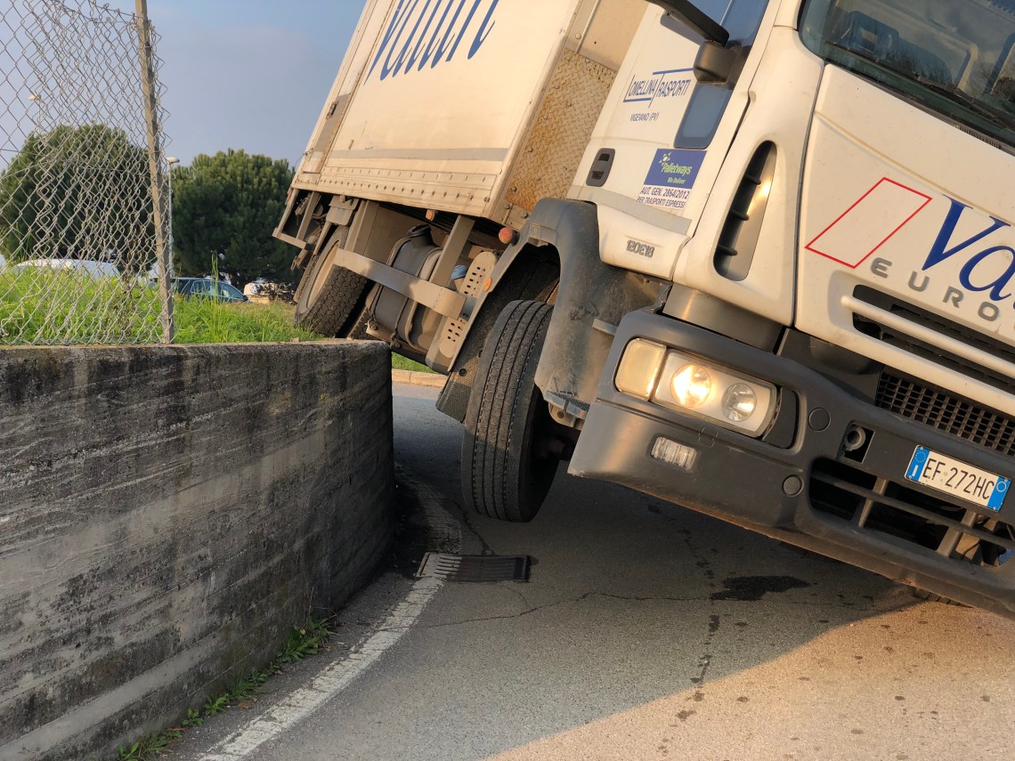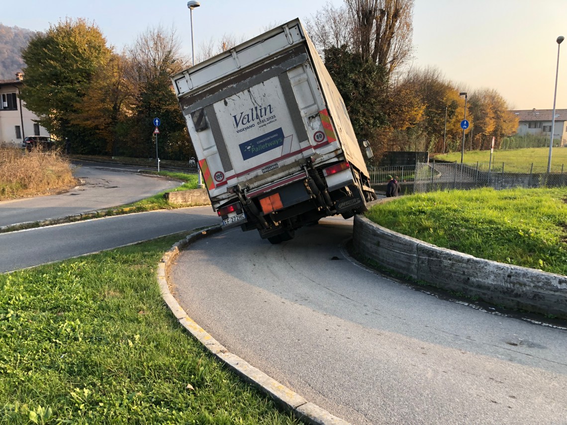 L’autista doveva consegnare pellami e prodotti chimici nella zona industriale e il TomTom gli ha indicato l’uscita sulla Dalmine Villa (dove gia’ settimana scorsa un auto era caduta nel sotto passo sul lato opposto). Nel corso della manovra la ruota posteriore e’ salita sul cordolo mettendo in bilico il mezzo che e’ a rischio ribaltamento. Chiusa l’entrata e l’uscita al traffico. Sul posto Carabinieri e mezzi di soccorso, in attesa della gru per spostare sulla carreggiata il mezzo, in questo momento a pieno carico,