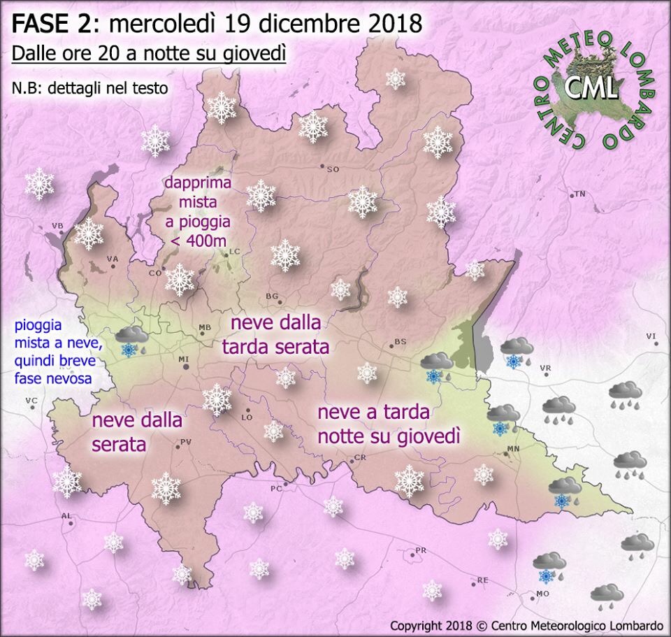 “Domani il tempo peggiorerà con piogge dal pomeriggio , neve inizialmente oltre i 500mt in calo la sera localmente fino in pianura. Possibile una spruzzata di neve nella notte anche su Mozzo.”