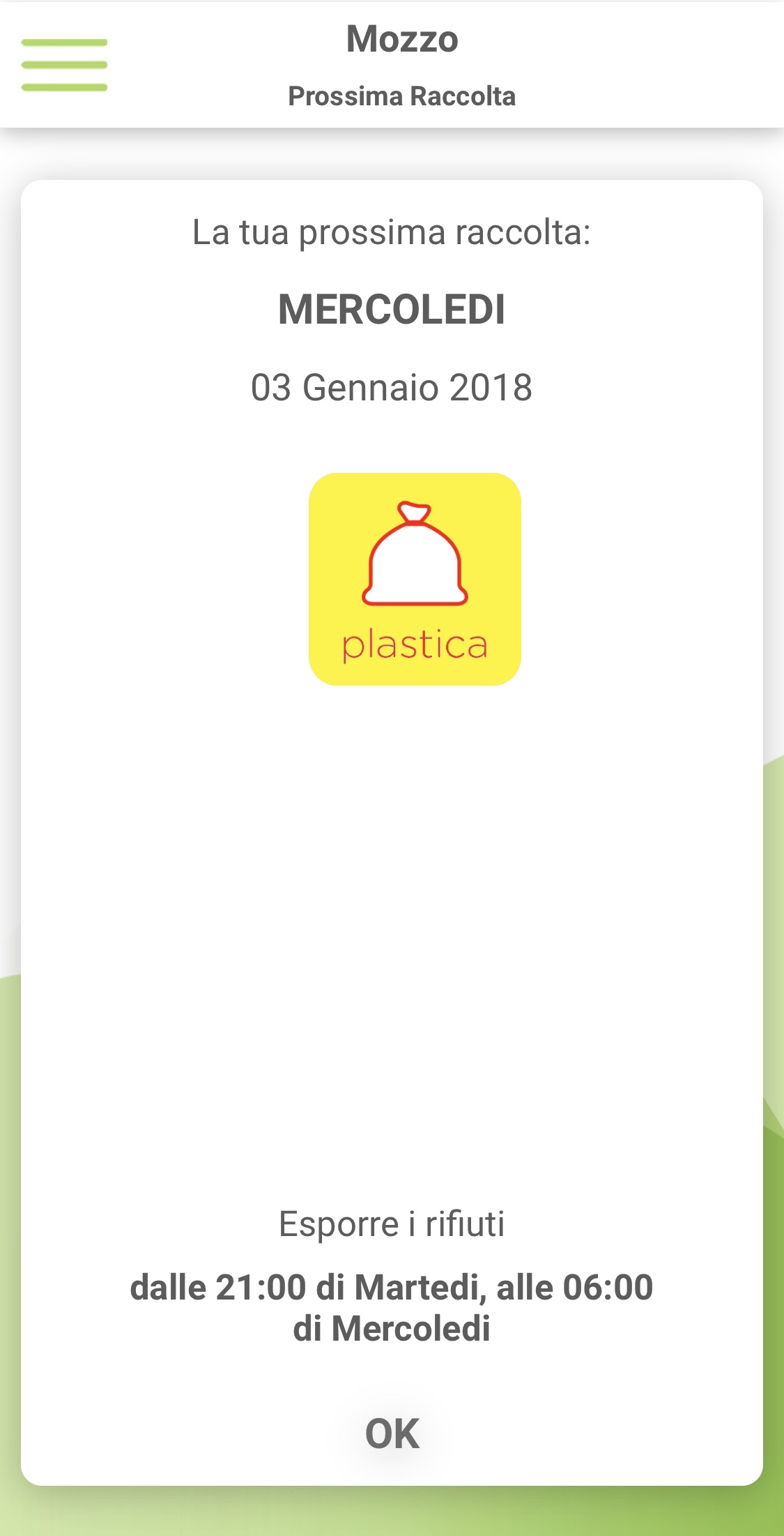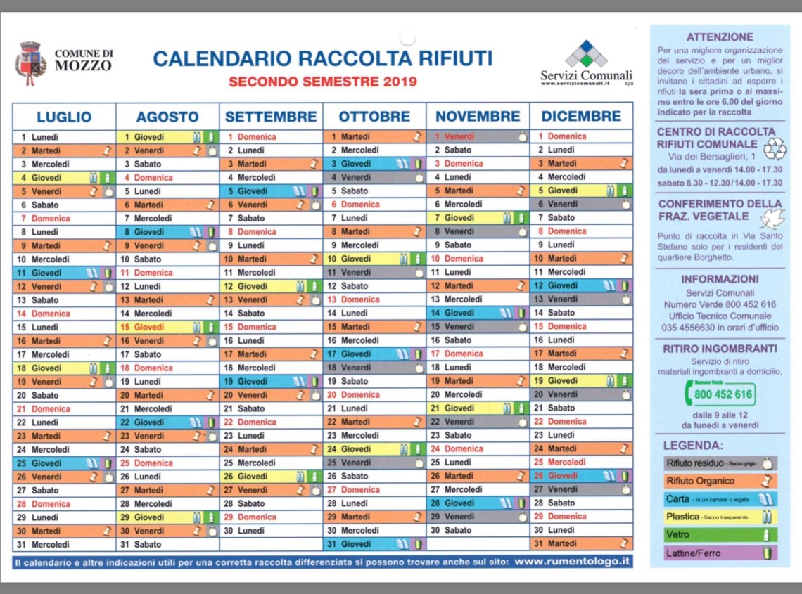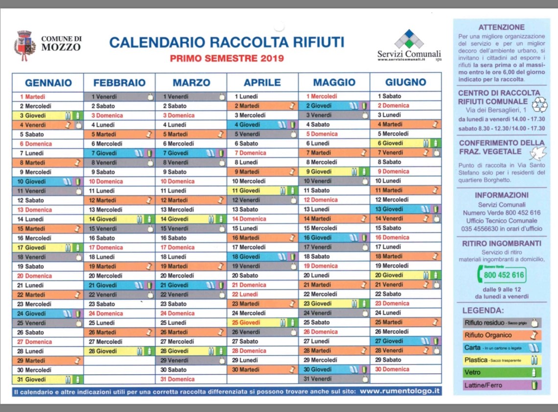 Mozzo/Rifiuti: il calendario 2019 (ma c’e anche l’app che ti avvisa”Rumentologo”).Sacchi in distribuzione a domicilio dal 7 gennaio admin4 gennaio 20196 gennaio 2019blog post Navigazione articoli PrecedenteContinua File pdf da stampare qui Distribuito a domicilio dal 7 gennaio Condividi:CondivisioneTweet Fai clic qui per stampare (Si apre in una nuova finestra) Stampa Fai clic per inviare un link a un amico via e-mail (Si apre in una nuova finestra) E-mail Mi piace Caricamento... Correlati