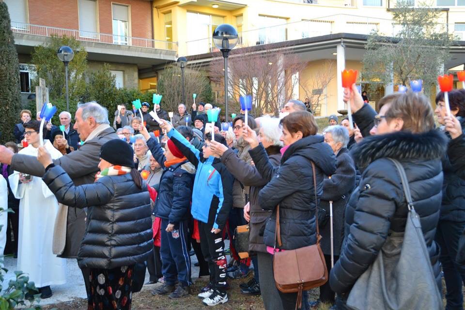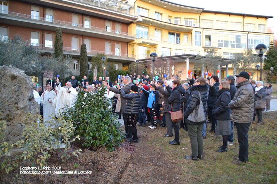 Oggi presso l’ex Casa degli Angeli al Borghetto Don Giulio ha celebrato la Messa solenne per tutti gli ammalati presenti e non. Al termine della Messa in corteo con le fiaccole è stata benedetta la Grotta della Madonnina di Lourdes posta nel parco dell’ospedale. Luigi Rota