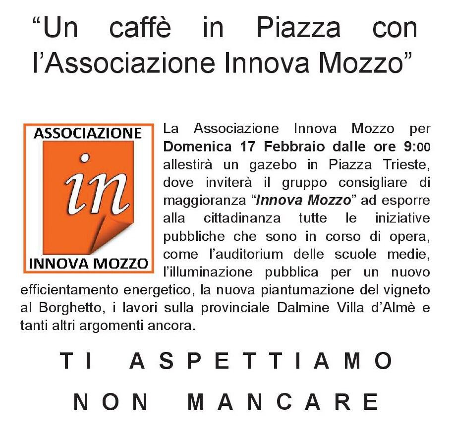 Mozzo/Politica: gli amministratori incontrano i cittadini per spiegare i nuovi progetti domenica 17 admin16 febbraio 2019blog post Navigazione articoli PrecedenteContinua Link Condividi:CondivisioneTweet Fai clic qui per stampare (Si apre in una nuova finestra) Stampa Fai clic per inviare un link a un amico via e-mail (Si apre in una nuova finestra) E-mail Mi piace Caricamento... Correlati