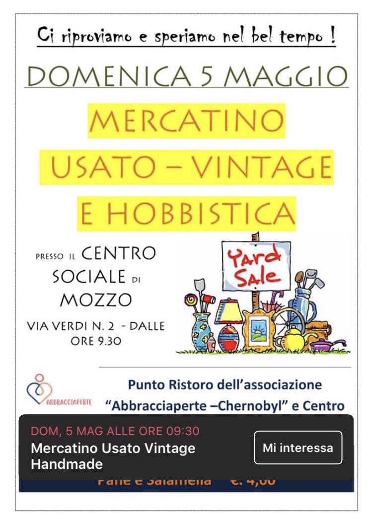 Mozzo: mercatino il 5 maggio admin29 aprile 2019blog post Navigazione articoli PrecedenteContinua Condividi:CondivisioneTweet Fai clic qui per stampare (Si apre in una nuova finestra) Stampa Fai clic per inviare un link a un amico via e-mail (Si apre in una nuova finestra) E-mail Mi piace Caricamento... Correlati
