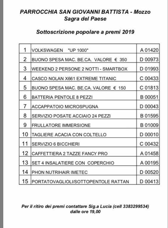 Mozzo/Sagra: tutti i numeri vincenti admin8 luglio 20198 luglio 2019blog post Navigazione articoli PrecedenteContinua Condividi:CondivisioneTweet Fai clic qui per stampare (Si apre in una nuova finestra) Stampa Fai clic per inviare un link a un amico via e-mail (Si apre in una nuova finestra) E-mail Mi piace Caricamento... Correlati