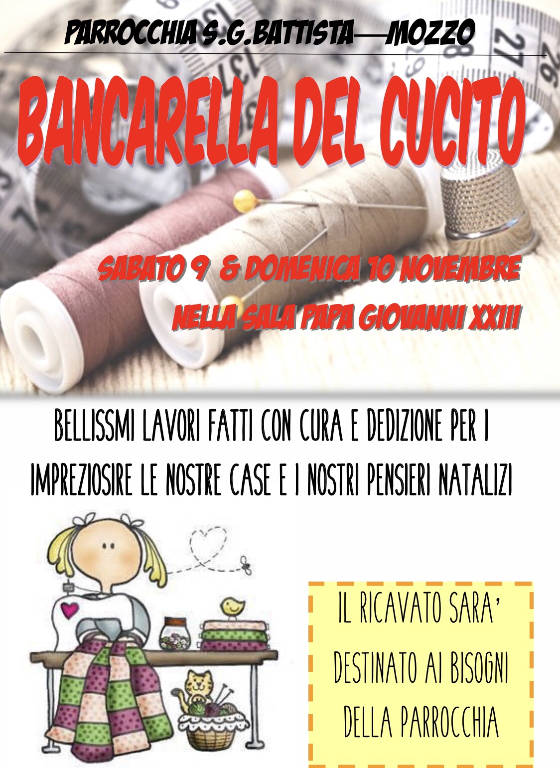 Mozzo: Bancarella del cucito sabato e domenica admin6 novembre 2019blog post Navigazione articoli PrecedenteContinua Condividi:CondivisioneTweet Fai clic qui per stampare (Si apre in una nuova finestra) Stampa Fai clic per inviare un link a un amico via e-mail (Si apre in una nuova finestra) E-mail Mi piace Caricamento... Correlati