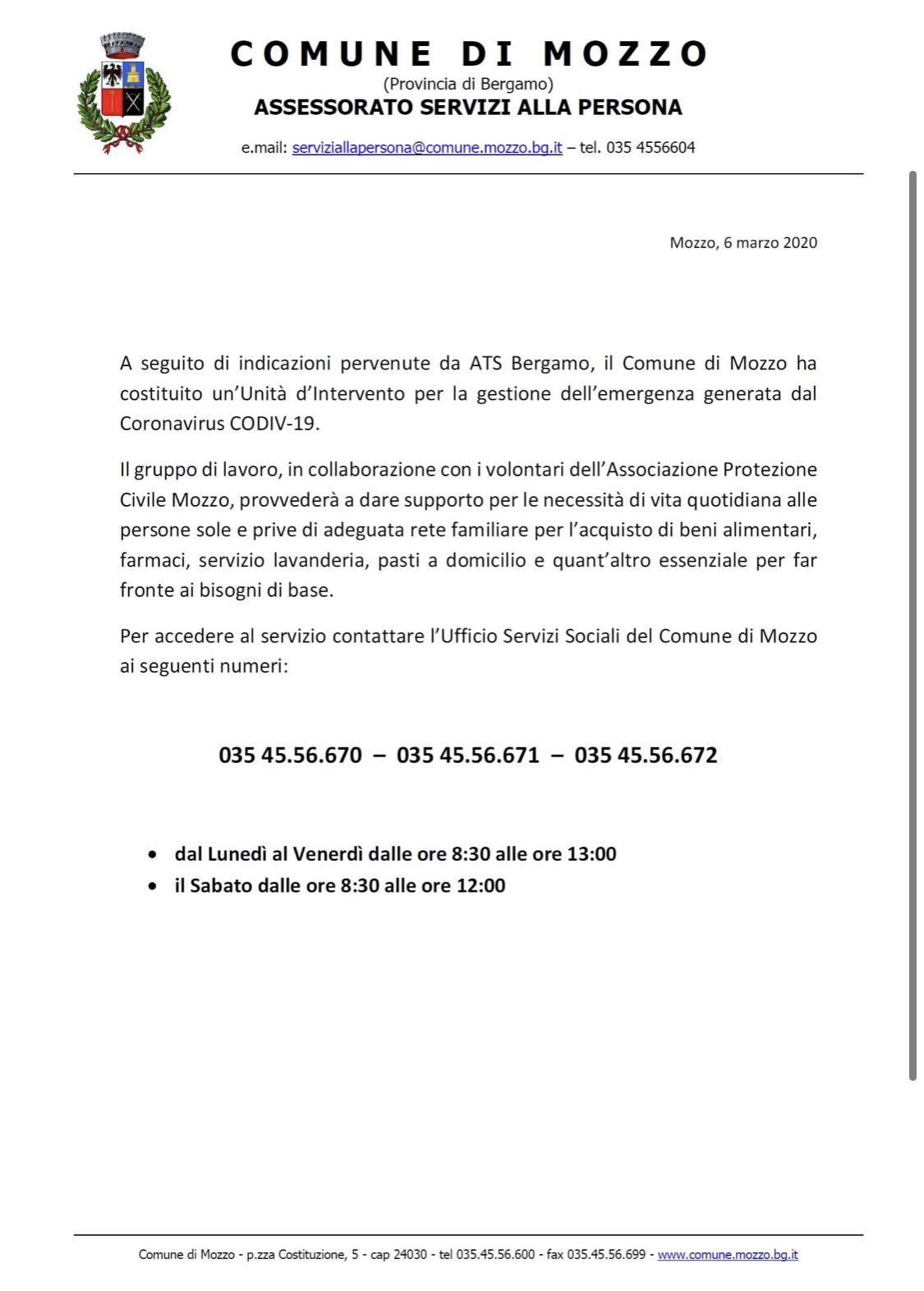 Mozzo/#Coronavirus: spesa/farmaci a domicilio su richiesta. Collaborazione comune/Volontari Protezione civile admin6 marzo 2020blog post Navigazione articoli PrecedenteContinua Condividi:CondivisioneTweet Fai clic qui per stampare (Si apre in una nuova finestra) Stampa Fai clic per inviare un link a un amico via e-mail (Si apre in una nuova finestra) E-mail Mi piace Caricamento... Correlati