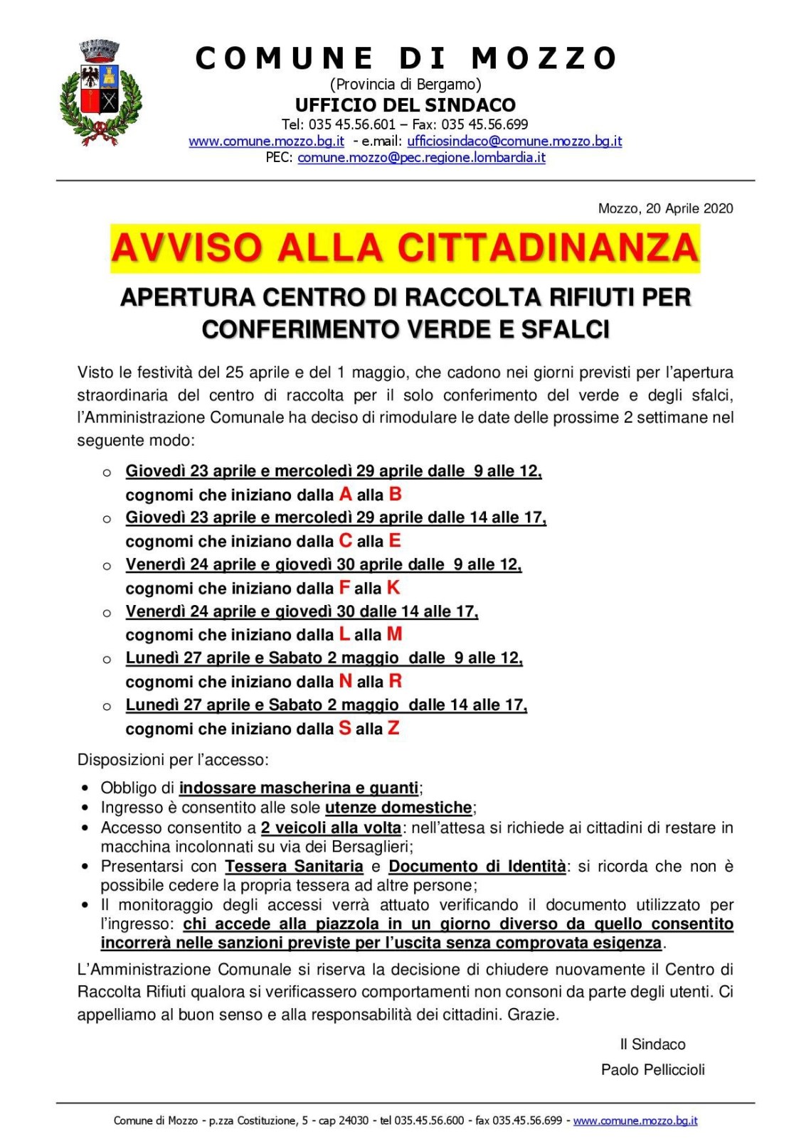 Mozzo/Stazione ecologica: variazione giorni conferimento verde admin20 aprile 202020 aprile 2020blog post Navigazione articoli PrecedenteContinua Link http://www.comune.mozzo.bg.it/c016143/po/mostra_news.php?multiente=c016143&tags=1&area=H&id=1546 Condividi:CondivisioneTweet Fai clic qui per stampare (Si apre in una nuova finestra) Stampa Fai clic per inviare un link a un amico via e-mail (Si apre in una nuova finestra) E-mail Mi piace Caricamento... Correlati