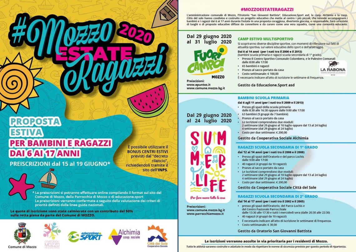 I genitori lavorano? Il Comune di Mozzo organizza #MozzoEstateRagazzi2020,campi estivi per i bambini, ragazzi e adolescenti.