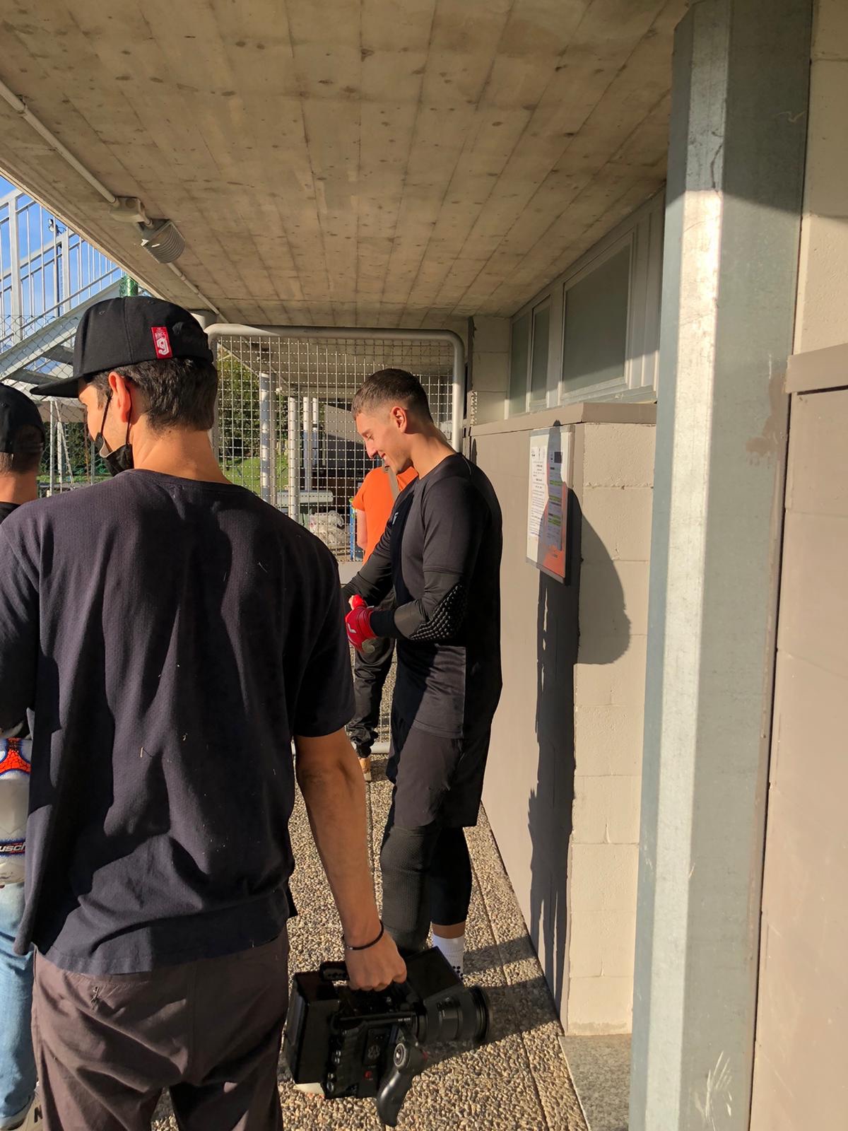 Dopo il Papu Gomez anche Pierluigi Gollini e’ sul campo della Colombera. Nelle immagini le riprese di uno spot per una famosa marca di guanti da calcio.