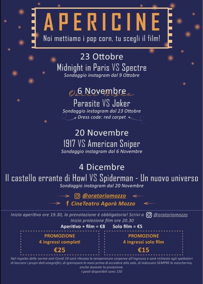 Mozzo/Agora’: AperiCine dal 23 ottobre admin12 ottobre 2020blog post Navigazione articoli PrecedenteContinua Condividi:CondivisioneTweet Fai clic qui per stampare (Si apre in una nuova finestra) Stampa Fai clic per inviare un link a un amico via e-mail (Si apre in una nuova finestra) E-mail Mi piace Caricamento... Correlati