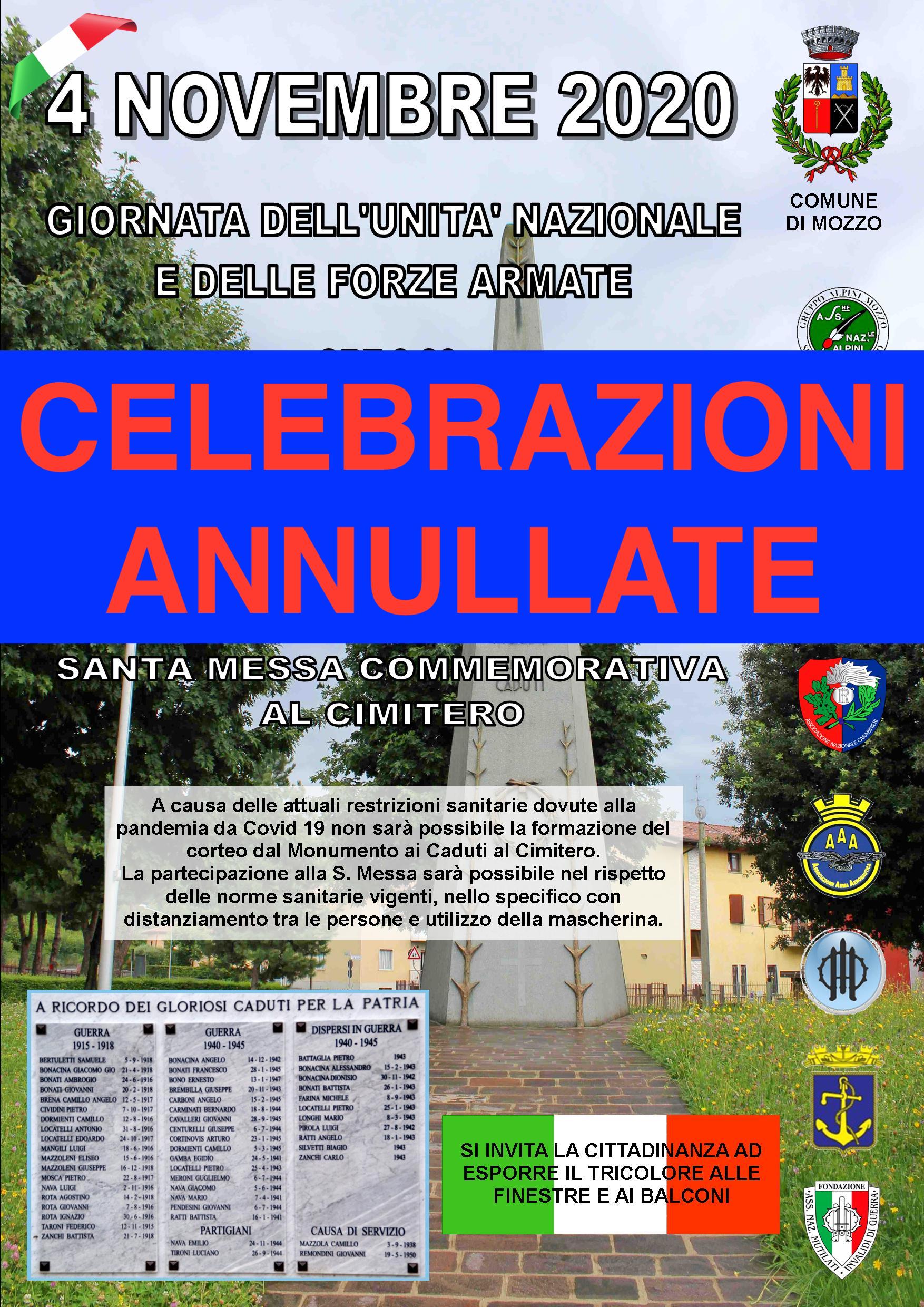 Mozzo/4 novembre: celebrazioni annullate. Messa confermata in parrocchia ore 15. admin29 ottobre 202031 ottobre 2020blog post Navigazione articoli PrecedenteContinua Come da disposizioni Prefetto.Condividi:CondivisioneTweet Fai clic qui per stampare (Si apre in una nuova finestra) Stampa Fai clic per inviare un link a un amico via e-mail (Si apre in una nuova finestra) E-mail Mi piace Caricamento... Correlati