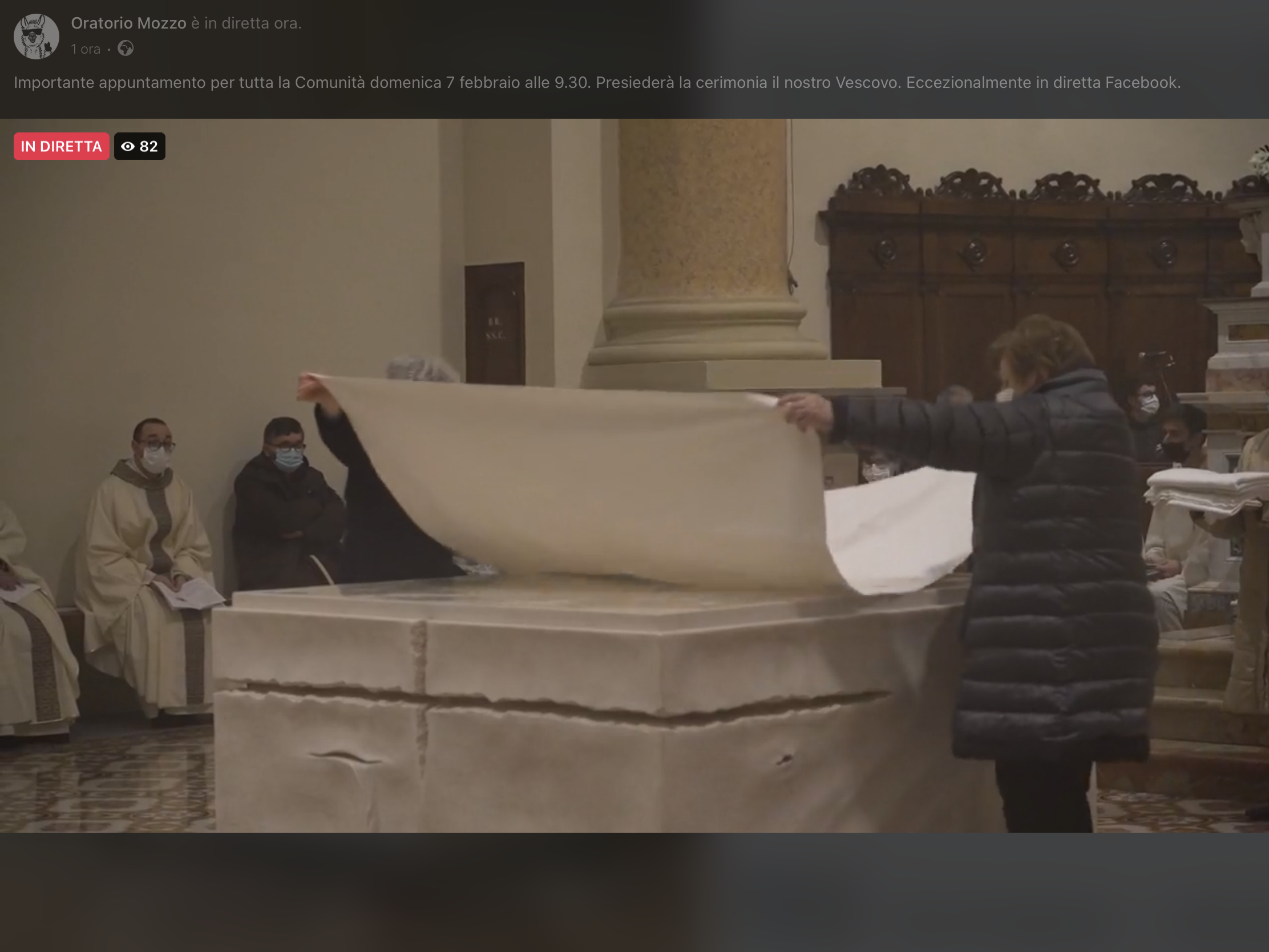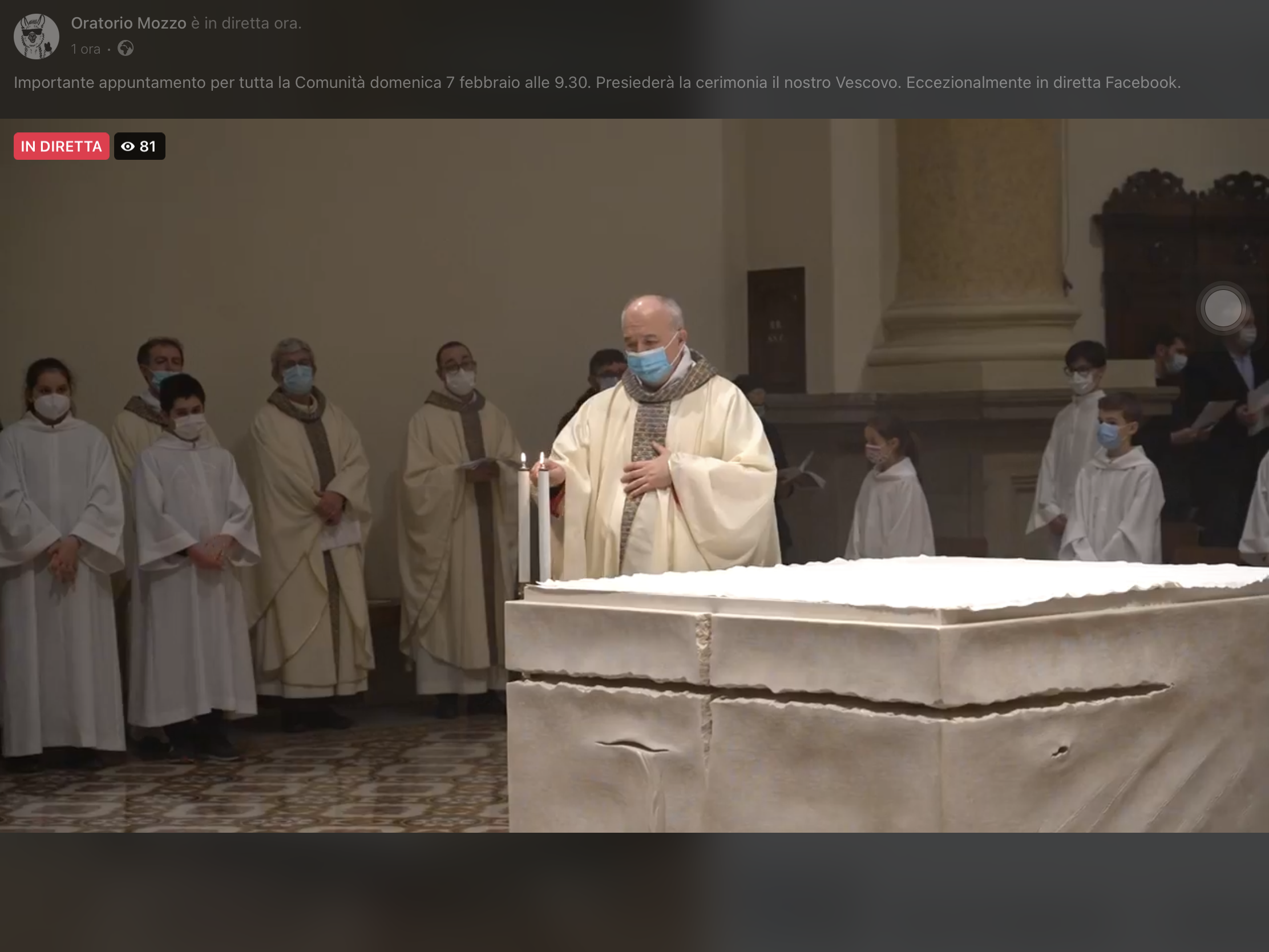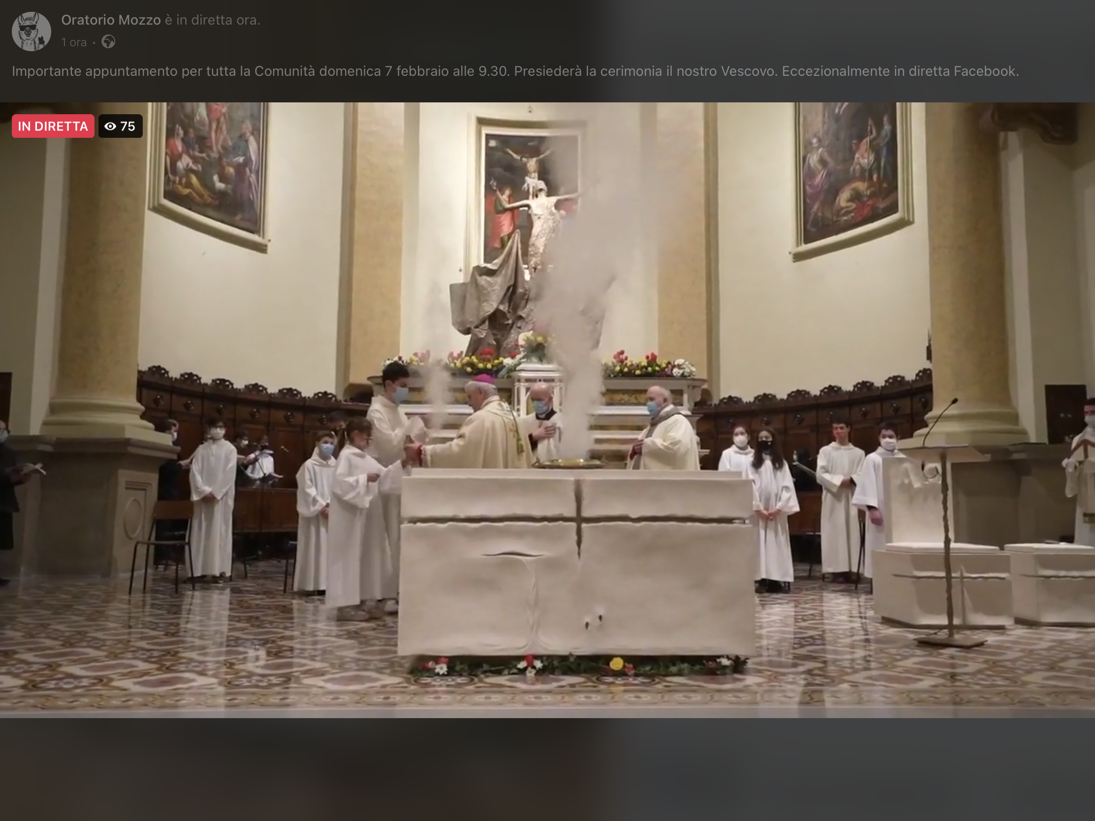 Mozzo/Parrocchia: dedicazione altare. Diretta streaming admin7 febbraio 20217 febbraio 2021blog post Navigazione articoli PrecedenteContinua Diretta streaming e registrazione (scarica video) offline Condividi:CondivisioneTweet Fai clic qui per stampare (Si apre in una nuova finestra) Stampa Fai clic per inviare un link a un amico via e-mail (Si apre in una nuova finestra) E-mail Mi piace Caricamento... Correlati