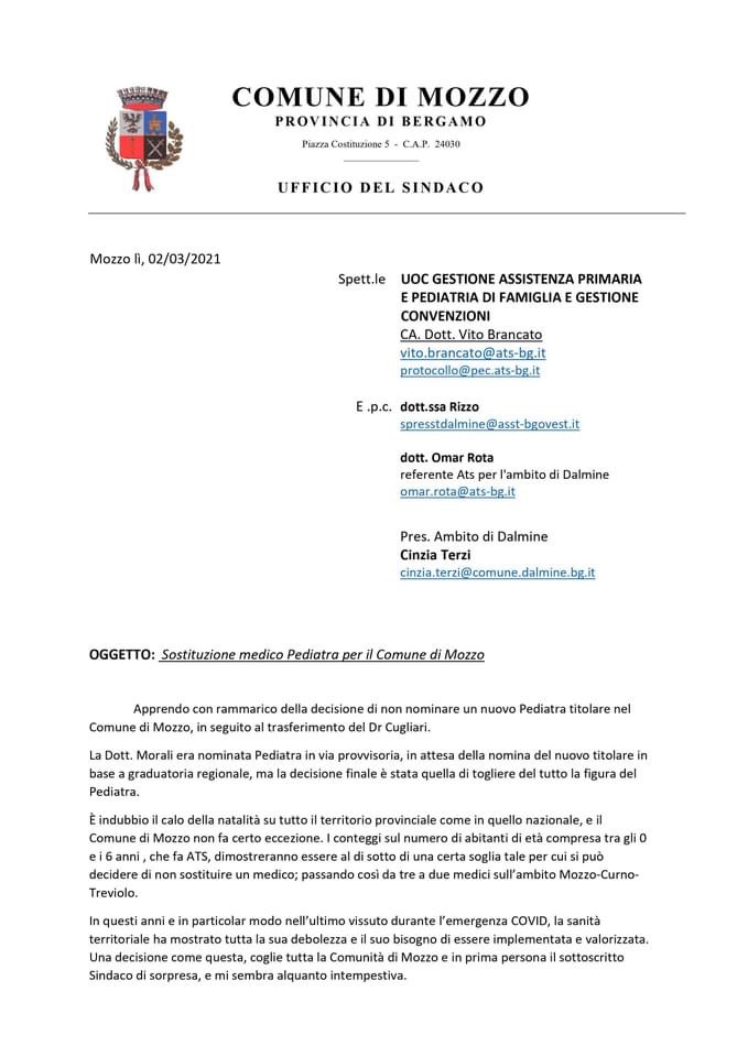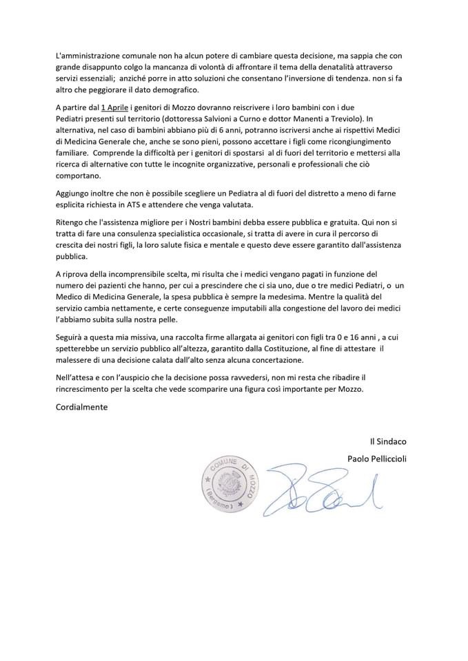 Mozzo: la raccolta firme per il pediatra a Mozzo. UPDATE: oltre 200 firme raccolte. admin4 marzo 20214 marzo 2021blog post Navigazione articoli PrecedenteContinua Qui la raccolta firme. Condividi:CondivisioneTweet Fai clic qui per stampare (Si apre in una nuova finestra) Stampa Fai clic per inviare un link a un amico via e-mail (Si apre in una nuova finestra) E-mail Mi piace Caricamento... Correlati