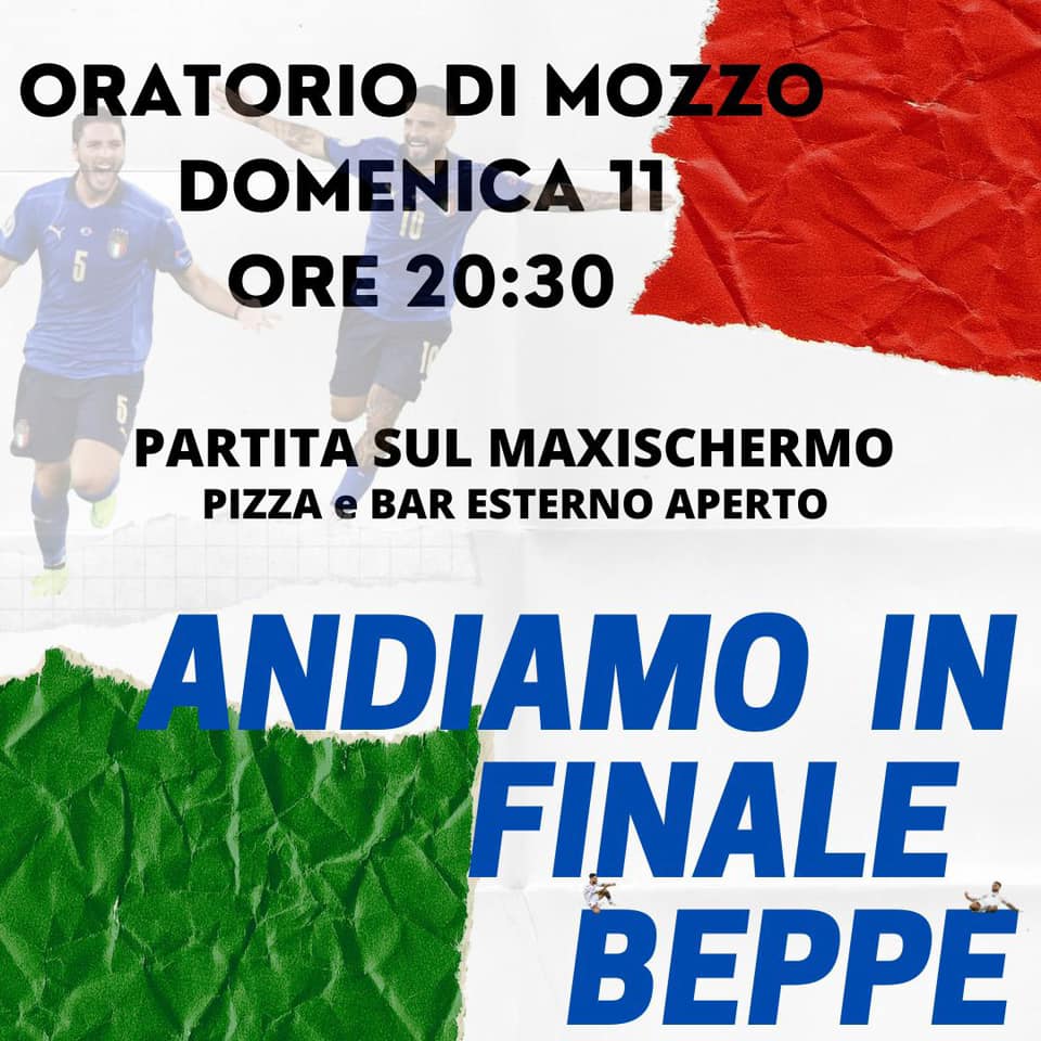 Mozzo/Europei: maxi schermo in oratorio domenica admin11 luglio 202115 luglio 2021blog post Navigazione articoli PrecedenteContinua Condividi:CondivisioneTweet Fai clic qui per stampare (Si apre in una nuova finestra) Stampa Fai clic per inviare un link a un amico via e-mail (Si apre in una nuova finestra) E-mail Mi piace Caricamento... Correlati