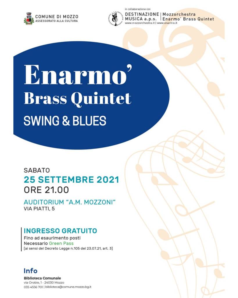 Mozzo/Musica: Enarmo’ Brass Quintet sabato 35 settembre admin23 settembre 202120 settembre 2021blog post Navigazione articoli PrecedenteContinua Condividi:CondivisioneTweet Fai clic qui per stampare (Si apre in una nuova finestra) Stampa Fai clic per inviare un link a un amico via e-mail (Si apre in una nuova finestra) E-mail Mi piace Caricamento... Correlati