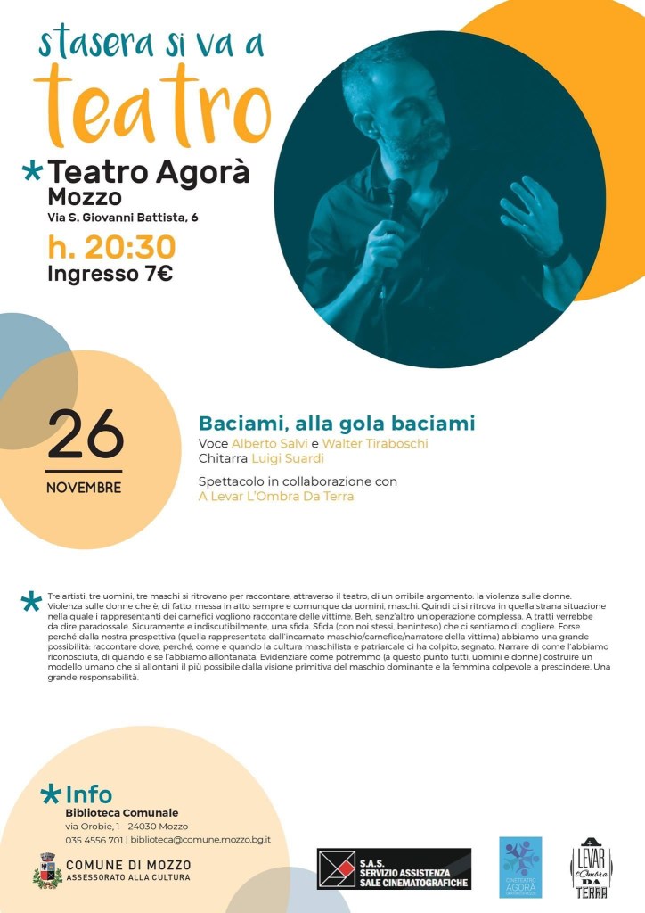 Mozzo/TeatroAgora‘: “Baciami alla gola baciami” ore 2030, venerdi 26 admin25 novembre 202126 novembre 2021blog post Navigazione articoli PrecedenteContinua Condividi:CondivisioneTweet Fai clic qui per stampare (Si apre in una nuova finestra) Stampa Fai clic per inviare un link a un amico via e-mail (Si apre in una nuova finestra) E-mail Mi piace Caricamento... Correlati
