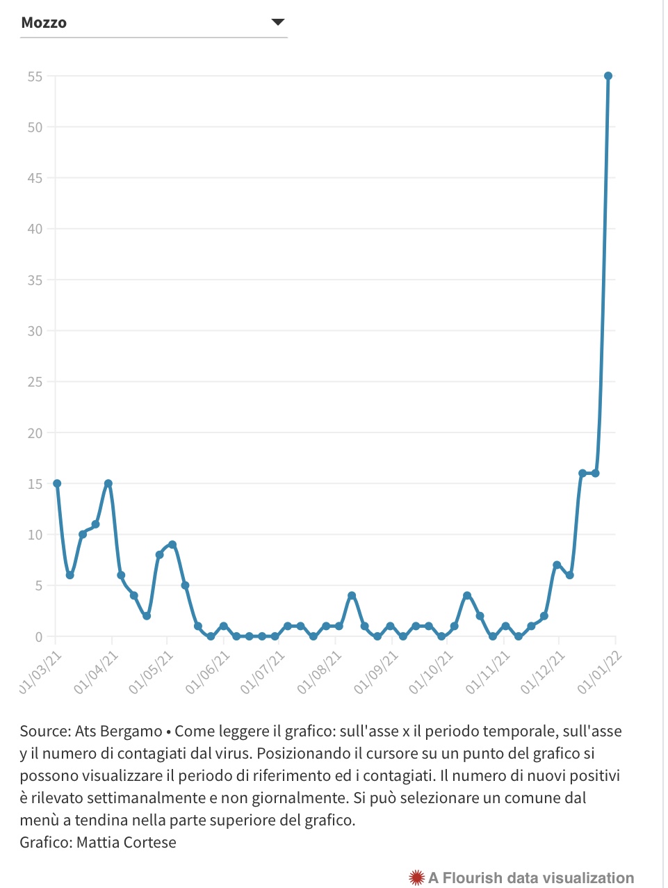 Dal 22 al 28 dicembre i contagi da Covid in provincia di Bergamo sono più che triplicati, passando dai 2.114 della settimana precedente ai 6.549 conteggiati nel report diffuso oggi (mercoledì 29 dicembre) dall’Agenzia di tutela della salute.