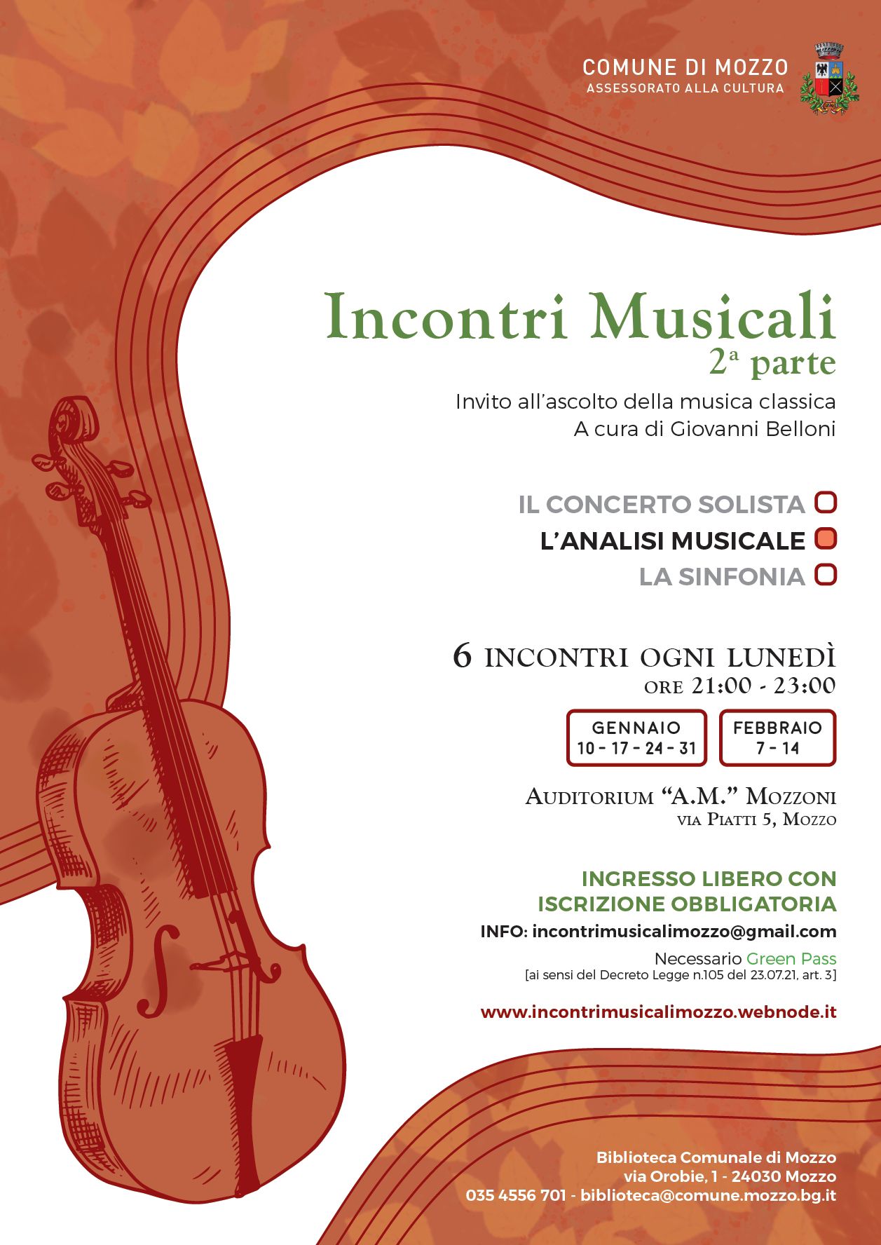 Mozzo/Muscia: INCONTRI MUSICALI – SECONDA PARTE|Comune di Mozzo admin17 gennaio 2022blog post Navigazione articoli PrecedenteContinua INCONTRI MUSICALI – SECONDA PARTEComune di Mozzo Condividi:CondivisioneTweet Stampa (Si apre in una nuova finestra) Stampa Invia un link a un amico via e-mail (Si apre in una nuova finestra) E-mail Mi piace Caricamento... Correlati