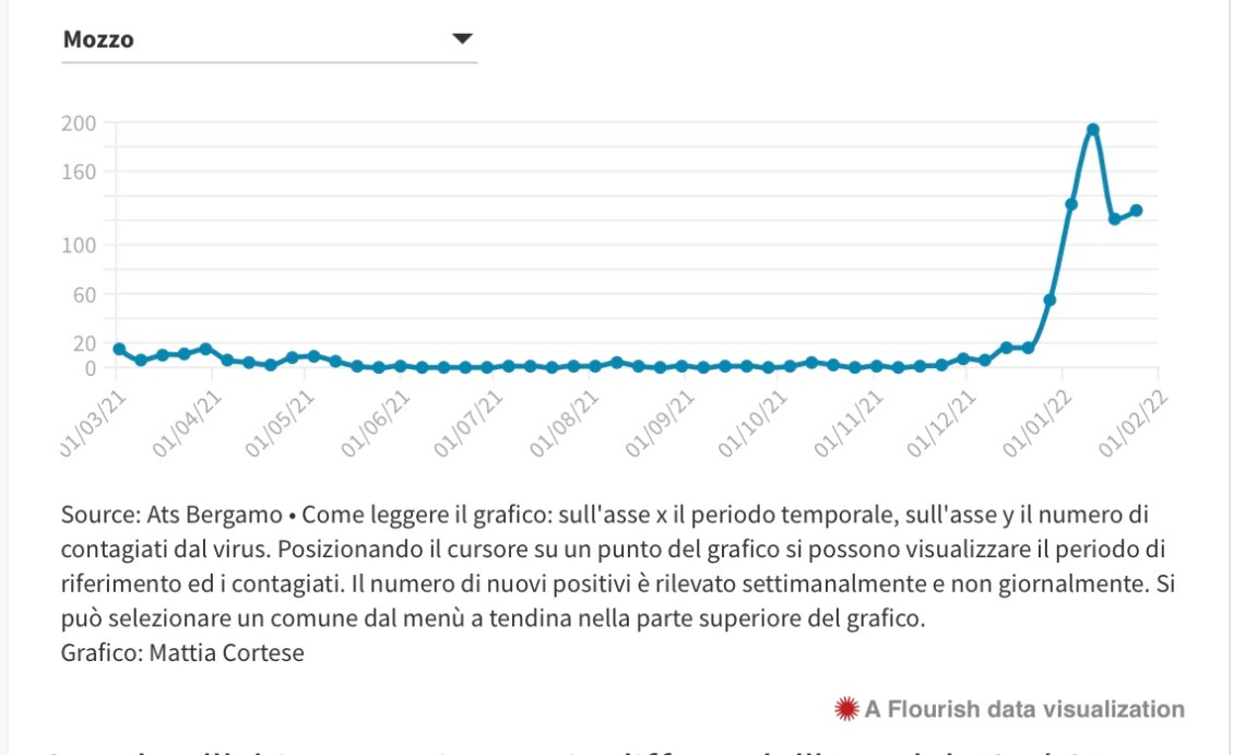 Dal 19 al 25 gennaio 19.191 nuovi casi contro i 20.969 della settimana precedente. L’incidenza settimanale è scesa a 1.708 positivi ogni 100 mila bergamaschi