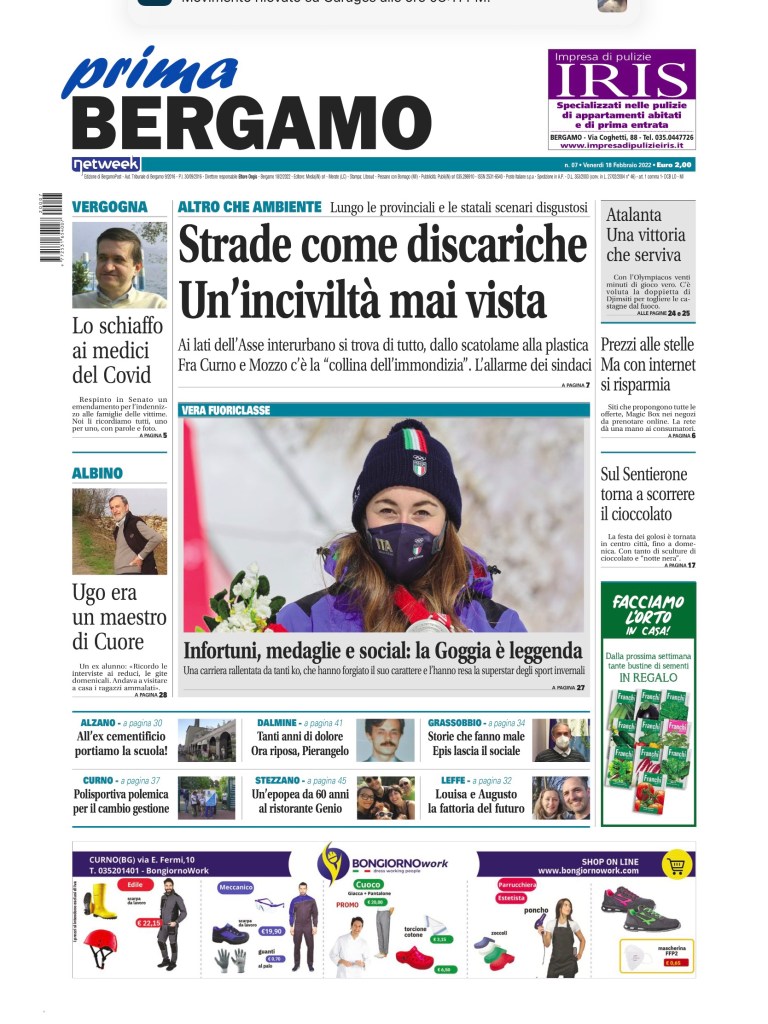 Mozzo in edicola|”Mozzo non e’ un paese per giovani” “Tentano di rubare e staccano la telecamera” “Fra Curno e Mozzo la collina dell’immondizia” |PrimaBergamo admin18 febbraio 202218 febbraio 2022blog post Navigazione articoli PrecedenteContinua OnLine e in edicola Condividi:CondivisioneTweet Fai clic qui per stampare (Si apre in una nuova finestra) Stampa Fai clic per inviare un link a un amico via e-mail (Si apre in una nuova finestra) E-mail Mi piace Caricamento... Correlati