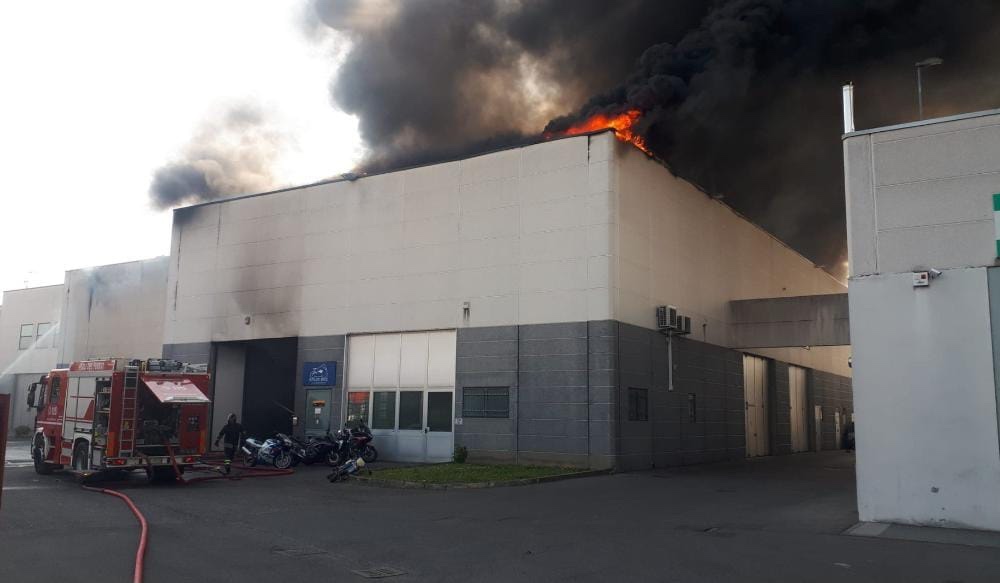Brucia officina a Treviolo: altissima colonna di fumo, Ats invita a tenere le finestre chiuse