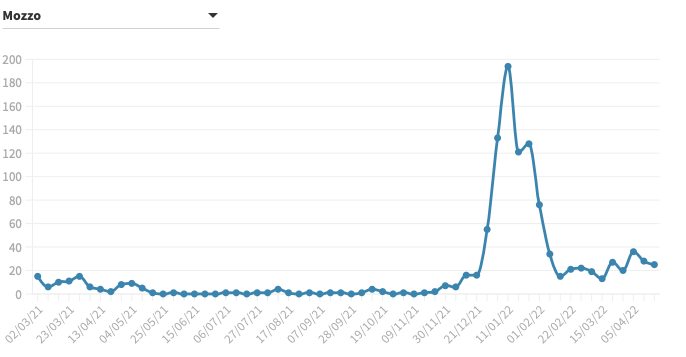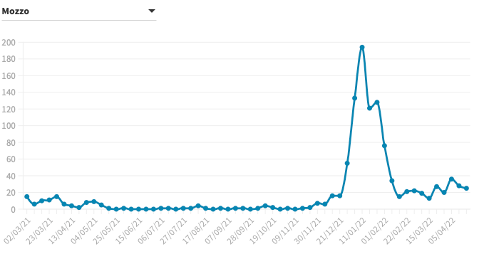 Tra il 13 e il 19 aprile l’incidenza dei contagi è scesa da 333 a 275 nuovi casi ogni centomila bergamaschi. Diagnosticate nel complesso 3.093 positività