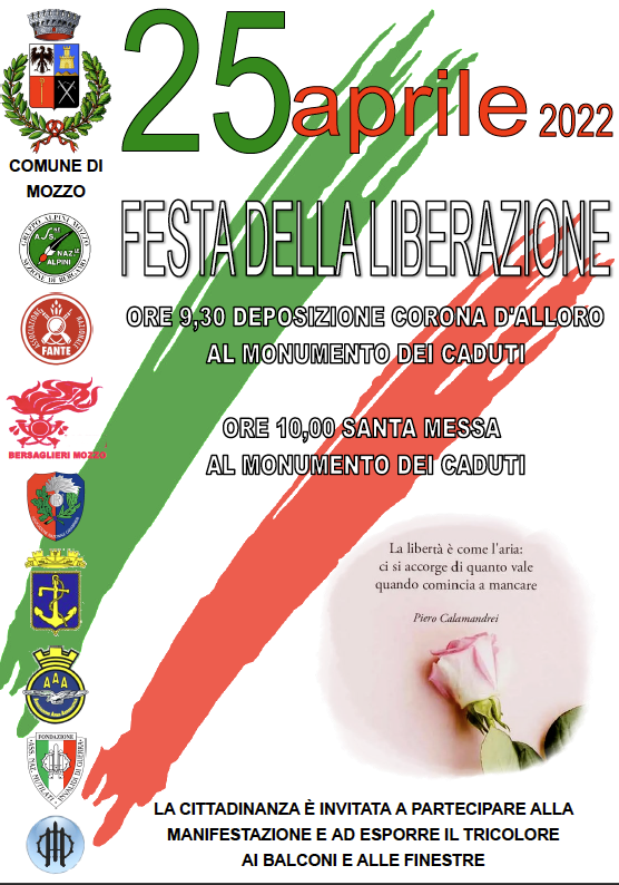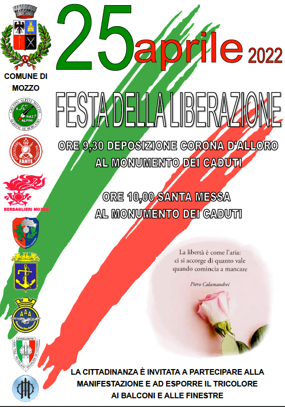 Mozzo/Liberazione: 25 aprile in piazza Costituzione admin20 aprile 2022blog post Navigazione articoli PrecedenteContinua Condividi:CondivisioneTweet Fai clic qui per stampare (Si apre in una nuova finestra) Stampa Fai clic per inviare un link a un amico via e-mail (Si apre in una nuova finestra) E-mail Mi piace Caricamento... Correlati