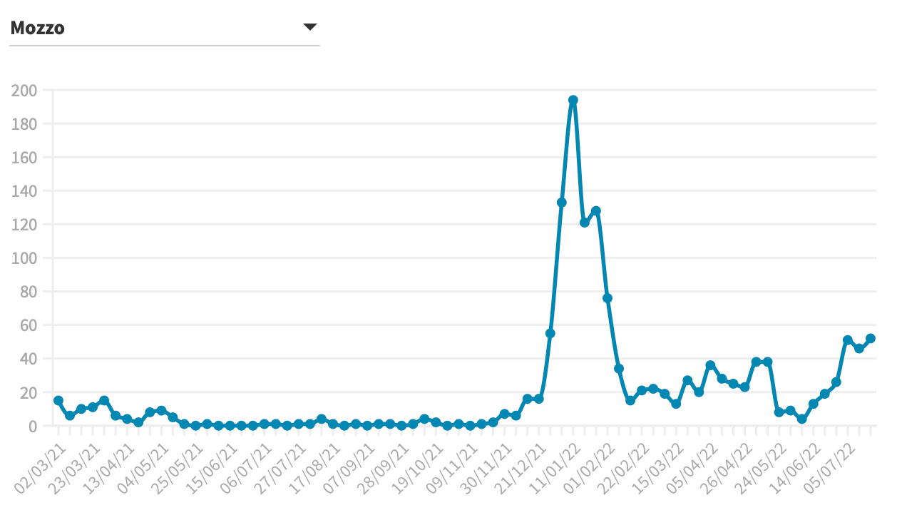 Si conferma il trend in crescita della curva pandemica, con 705 nuovi casi ogni 100 mila abitanti registrati dal 13 al 19 luglio