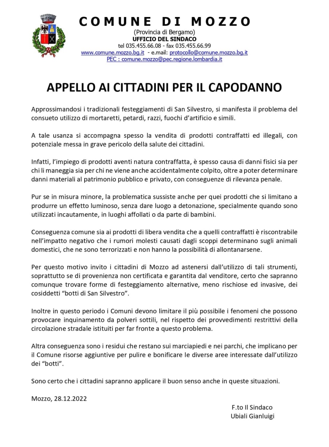 Mozzo/Capodanno: appello del sindaco admin30 dicembre 202230 dicembre 2022blog post Navigazione articoli PrecedenteContinua Condividi:CondivisioneTweet Fai clic qui per stampare (Si apre in una nuova finestra) Stampa Fai clic per inviare un link a un amico via e-mail (Si apre in una nuova finestra) E-mail Mi piace Caricamento... Correlati