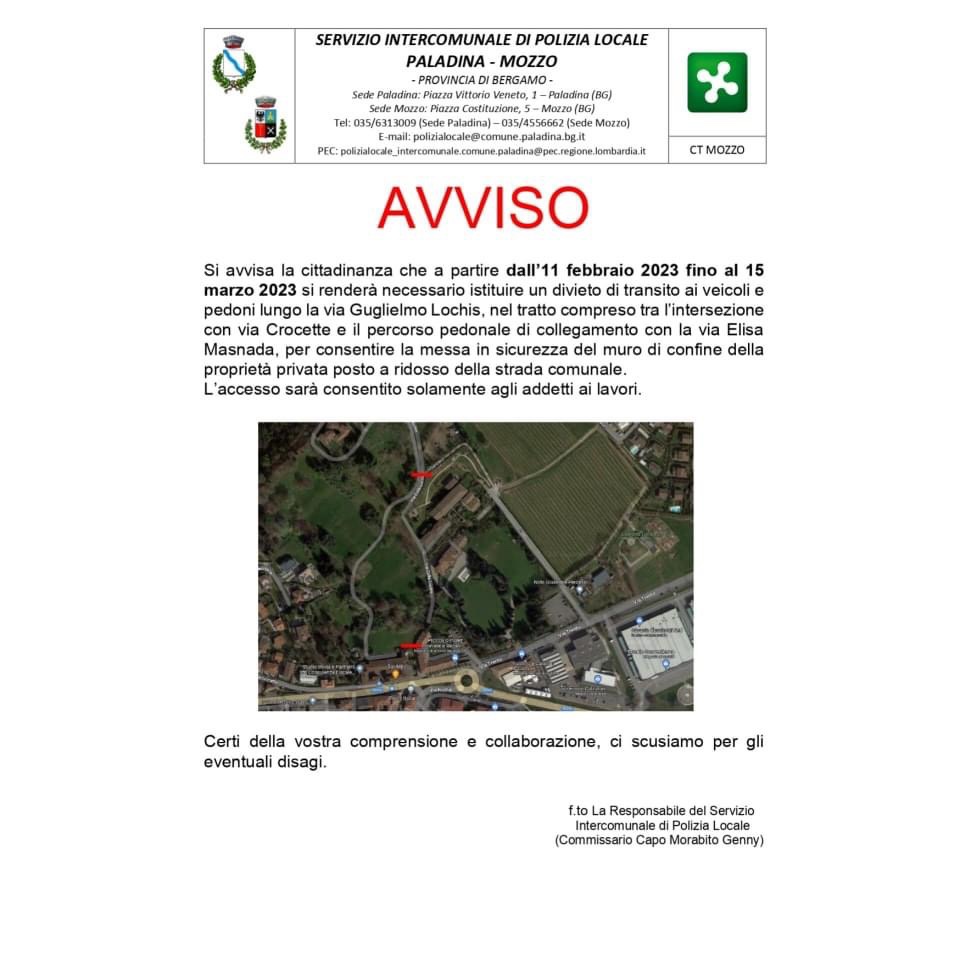 Mozzo/Via Lochis: chiusura per lavori dalle Crocette, fino al 15 marzo admin13 febbraio 2023blog post Navigazione articoli PrecedenteContinua Condividi:CondivisioneTweet Fai clic qui per stampare (Si apre in una nuova finestra) Stampa Fai clic per inviare un link a un amico via e-mail (Si apre in una nuova finestra) E-mail Mi piace Caricamento... Correlati