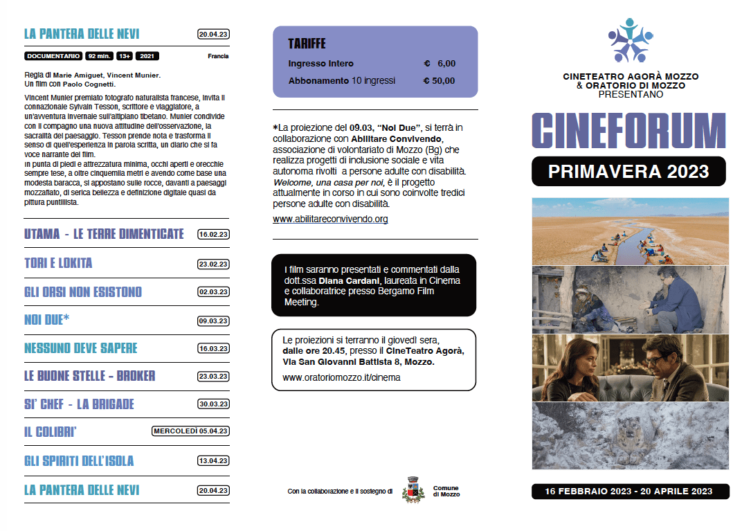 Mozzo/CineAgora’: il cineforum di primavera oratorio Mozzo admin10 marzo 2023blog post Navigazione articoli PrecedenteContinua Condividi:CondivisioneTweet Fai clic qui per stampare (Si apre in una nuova finestra) Stampa Fai clic per inviare un link a un amico via e-mail (Si apre in una nuova finestra) E-mail Mi piace Caricamento... Correlati