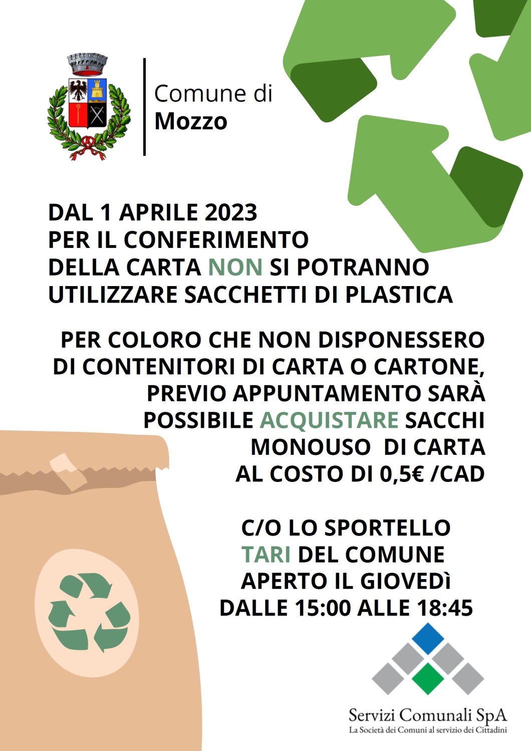 DAL 1° APRILE STOP AL CONFERMIMENTO DELLA CARTA NEI SACCHETTI DI PLASTICA|Comune di Mozzo admin14 marzo 202313 marzo 2023blog post Navigazione articoli PrecedenteContinua DAL 1° APRILE STOP AL CONFERMIMENTO DELLA CARTA NEI SACCHETTI DI PLASTICA Comune di Mozzo Condividi:CondivisioneTweet Fai clic qui per stampare (Si apre in una nuova finestra) Stampa Fai clic per inviare un link a un amico via e-mail (Si apre in una nuova finestra) E-mail Mi piace Caricamento... Correlati