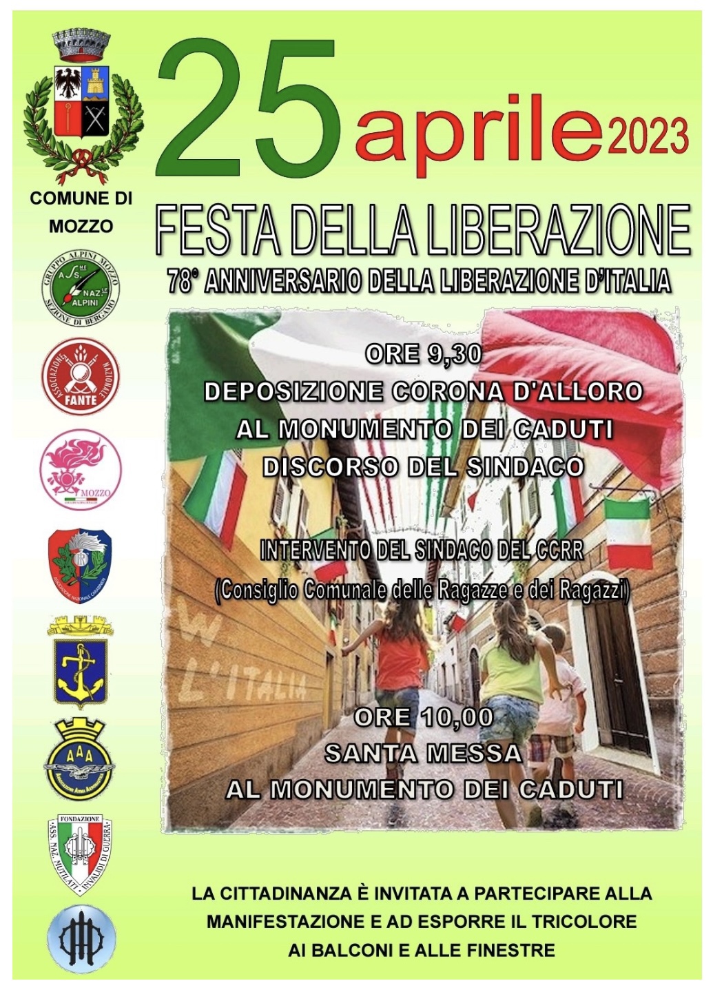 Mozzo/Liberazione: la cerimonia del 25 aprile admin20 aprile 202321 aprile 2023blog post Navigazione articoli PrecedenteContinua Condividi:CondivisioneTweet Fai clic qui per stampare (Si apre in una nuova finestra) Stampa Fai clic per inviare un link a un amico via e-mail (Si apre in una nuova finestra) E-mail Mi piace Caricamento... Correlati