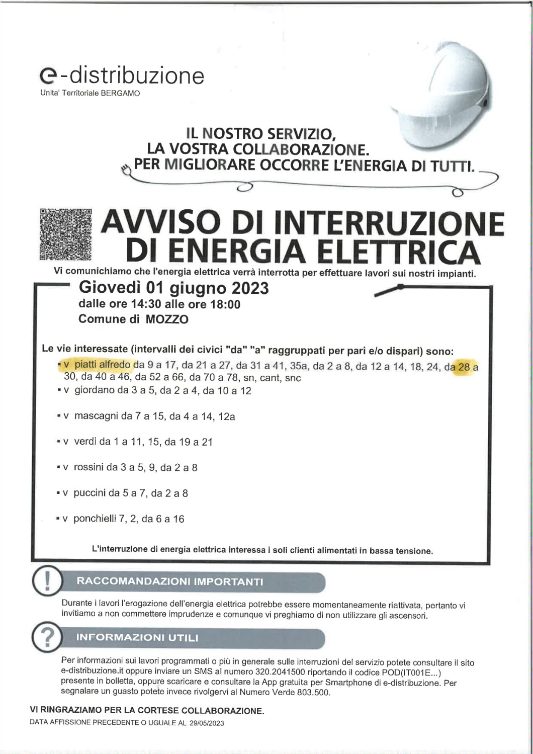 AVVISO DI INTERRUZIONE DI ENERGIA ELETTRICA- 1 GIUGNO 2023 admin31 Maggio 202330 Maggio 2023blog post Navigazione articoli PrecedenteContinua https://www.comune.mozzo.bg.it/c016143/po/mostra_news.php?id=2409&area=H Condividi:CondivisioneTweet Fai clic qui per stampare (Si apre in una nuova finestra) Stampa Fai clic per inviare un link a un amico via e-mail (Si apre in una nuova finestra) E-mail Mi piace Caricamento... Correlati