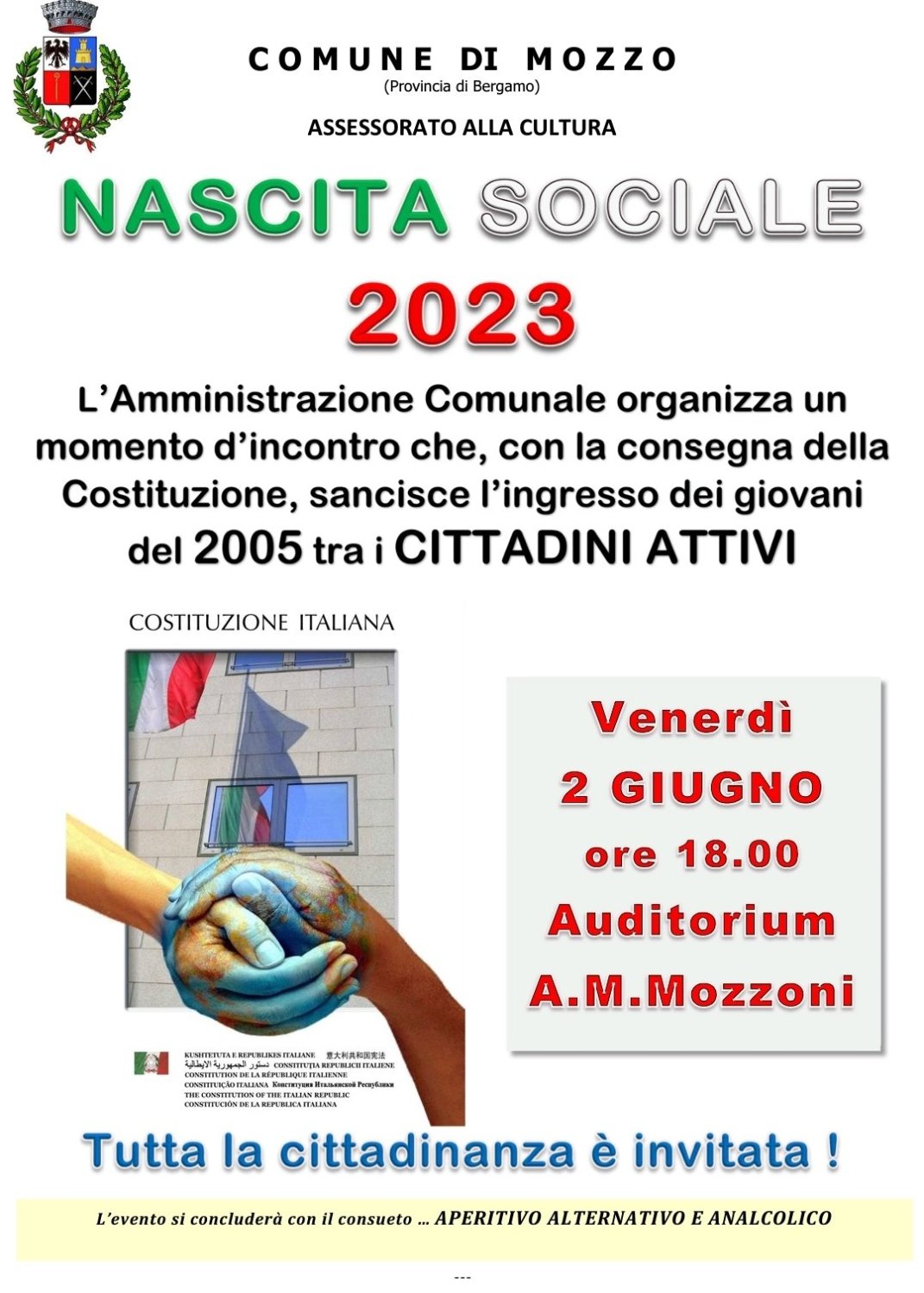 MOZZO: 2 GIUGNO 2023 – NASCITA SOCIALE admin1 giugno 202330 Maggio 2023blog post Navigazione articoli PrecedenteContinua https://www.comune.mozzo.bg.it/c016143/po/mostra_news.php?id=2391&area=H Condividi:CondivisioneTweet Fai clic qui per stampare (Si apre in una nuova finestra) Stampa Fai clic per inviare un link a un amico via e-mail (Si apre in una nuova finestra) E-mail Mi piace Caricamento... Correlati