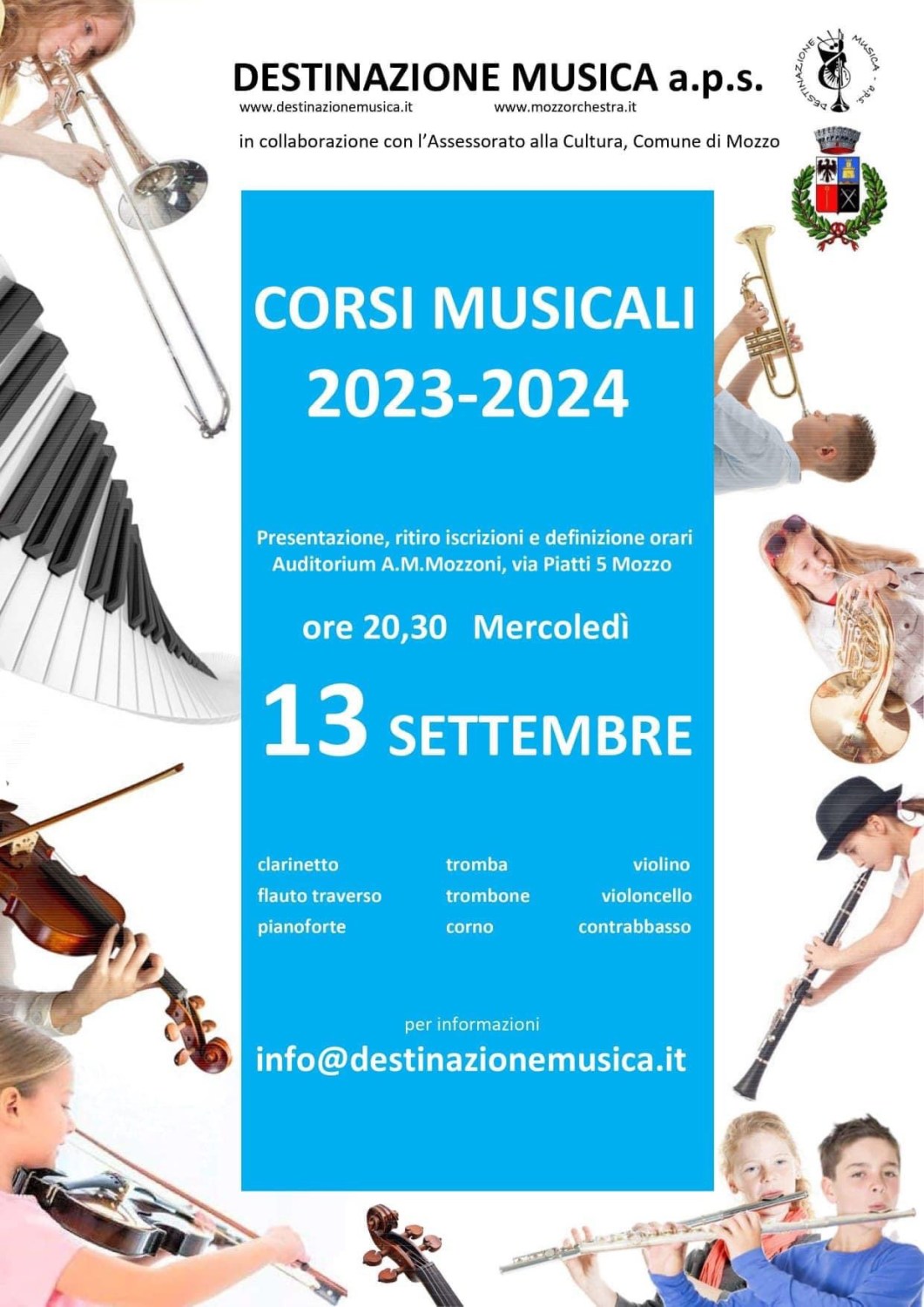 Mozzo: corsi musicali dal 13 settembre admin12 settembre 2023blog post Navigazione articoli PrecedenteContinua Condividi:CondivisioneTweet Fai clic qui per stampare (Si apre in una nuova finestra) Stampa Fai clic per inviare un link a un amico via e-mail (Si apre in una nuova finestra) E-mail Mi piace Caricamento... Correlati