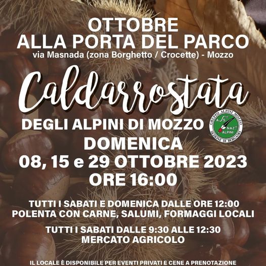 Mozzo/Borghetto: caldarrostata alla Porta del Parco domenica 29 ottobre admin26 ottobre 202318 ottobre 2023blog post Navigazione articoli PrecedenteContinua Condividi:CondivisioneTweet Fai clic qui per stampare (Si apre in una nuova finestra) Stampa Fai clic per inviare un link a un amico via e-mail (Si apre in una nuova finestra) E-mail Mi piace Caricamento... Correlati