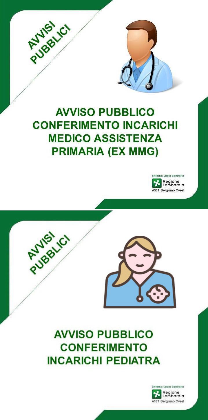 Il primo riguarda un Avviso pubblico per la predisposizione della graduatoria aziendale per l’ASST Bergamo Ovest, valevole per l’anno 2024, di Medici disponibili al conferimento di incarico Provvisorio, a tempo determinato e/o all’affidamento di sostituzione quale Medico del Ruolo Unico di Assistenza primaria a ciclo di scelta (ex MMG).