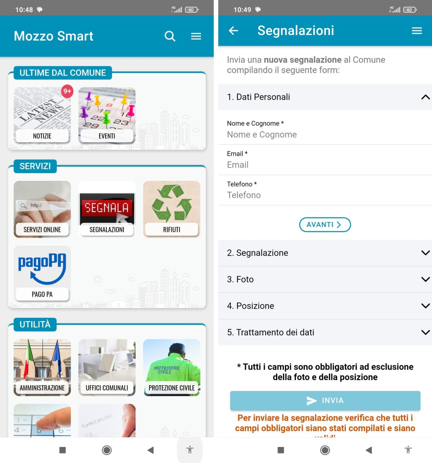 possono utilizzare la sezione Segnalazioni dell’app Mozzo Smart.