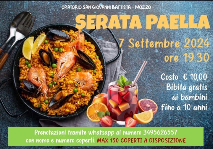 Mozzo/Oratorio: Serata Paella 7 settembre admin26 agosto 2024blog post Navigazione articoli PrecedenteContinua Condividi:CondivisioneTweet Fai clic qui per stampare (Si apre in una nuova finestra) Stampa Fai clic per inviare un link a un amico via e-mail (Si apre in una nuova finestra) E-mail Mi piace Caricamento... Correlati