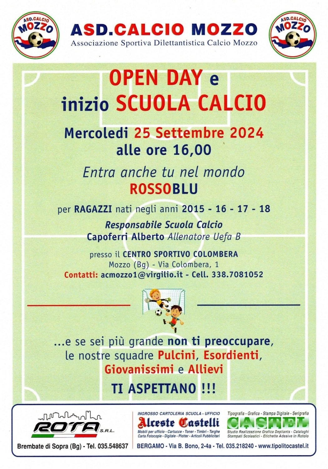 Mozzo/Calcio: open day 25 settembre admin17 settembre 2024blog post Navigazione articoli PrecedenteContinua Condividi:CondivisioneTweet Fai clic qui per stampare (Si apre in una nuova finestra) Stampa Fai clic per inviare un link a un amico via e-mail (Si apre in una nuova finestra) E-mail Mi piace Caricamento... Correlati