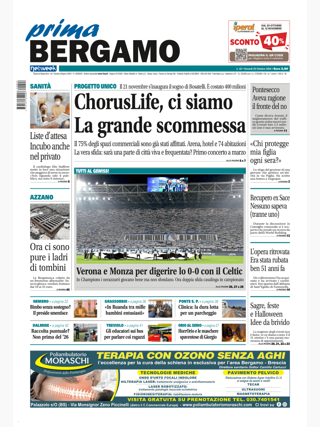 Mozzo in edicola|”Il Medico non sceglie Mozzo: delusi i cittadini e il sindaco” “MD: i dettagli della rapina” “ Mozzafiato: un successo nonostante la pioggia” “Piedibus: si cercano volontari per 20 minuti alla settimana” “La meraviglia dello sguardo dell’artista al centro sociale “ |Prima Bergamo